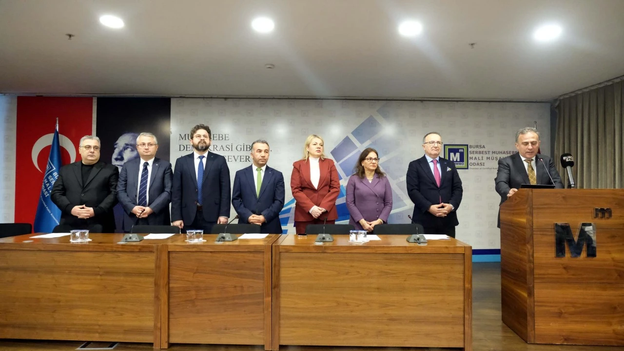 Bursa Serbest Muhasebeci Mali Müşavirler Odası adına Yönetim Kurumu Başkanı Hüseyin Halil 13 Aralık 2025 tarihli ve 586 Sayılı Vergi Usul Kanunu Genel Tebliği'ne yönelik basın açıklaması gerçekleştirdi.