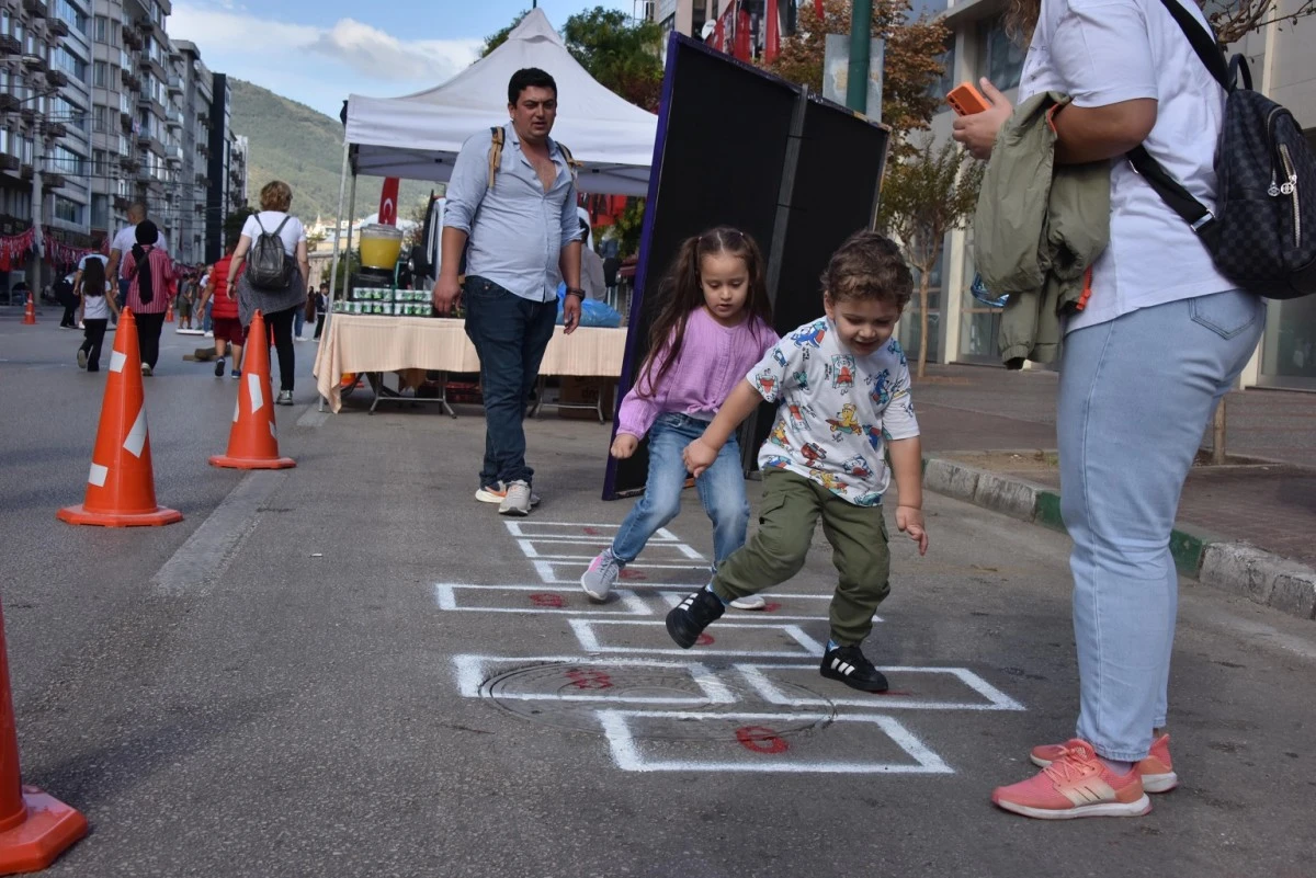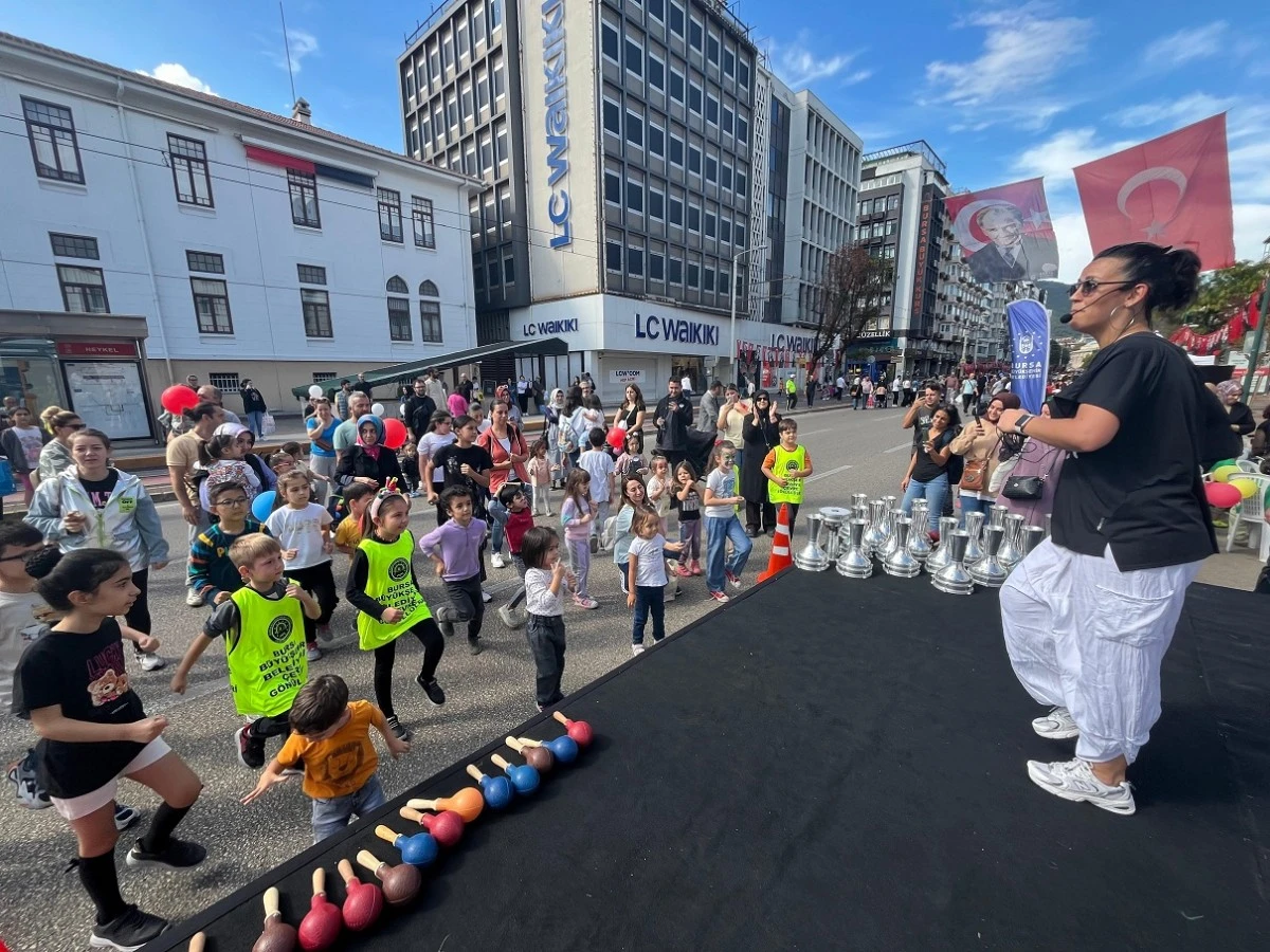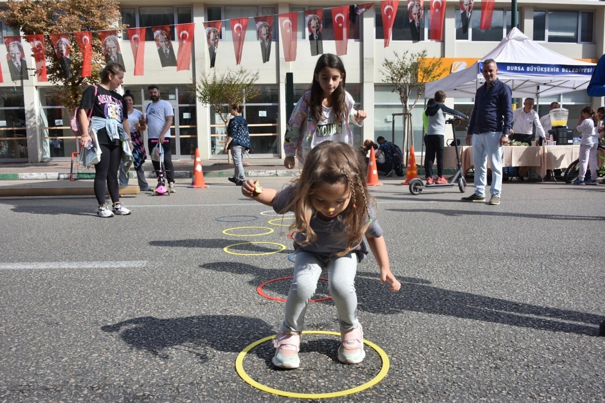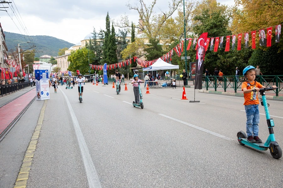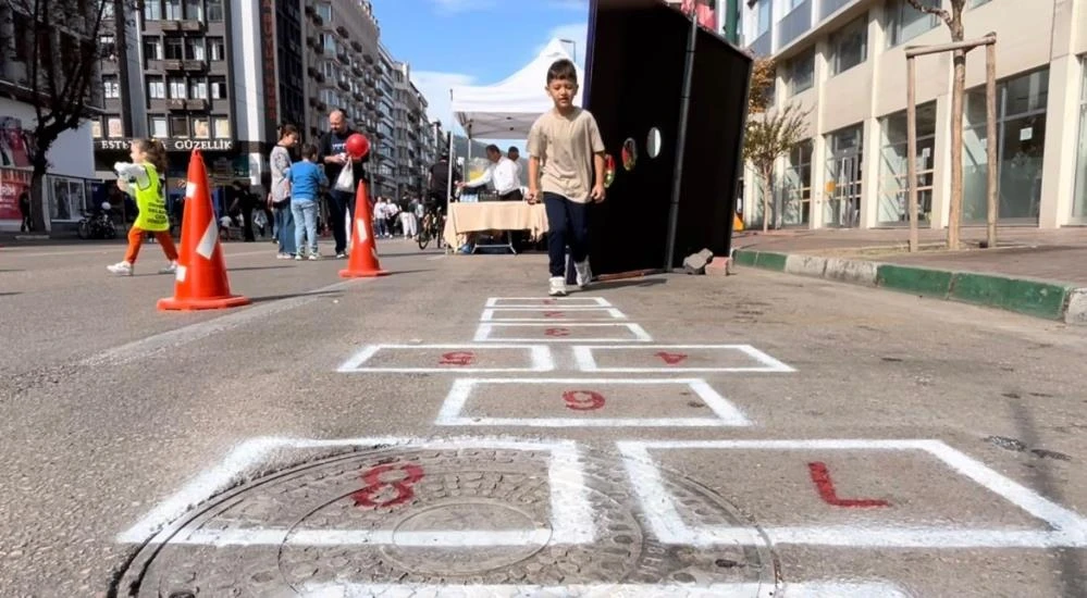 Bursa Büyükşehir Belediyesi, 'Avrupa Hareketlilik Haftası' etkinlikleri çerçevesinde Atatürk Caddesi'ni 2 saatliğine trafiğe kapatarak çocuklara ayırdı. Aileleri ile gelen çocuklar 2 saat boyunca doyasıya eğlendi.