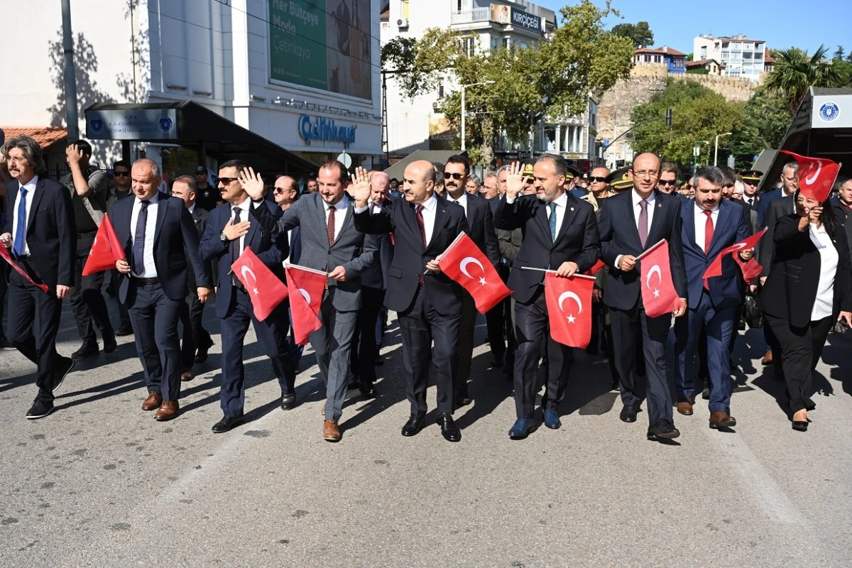 Bursa’nın Yunan işgalinden kurtuluşunun 101. yıldönümü kutlamaları büyük coşkuyla başladı. Büyükşehir Belediye Bandosu ve Bursa Mehter Takımı’nın konser verdiği kurtuluş kutlamaları Tarihi Belediye Binası'na Türk Bayrağı'nın asılması ile başladı.