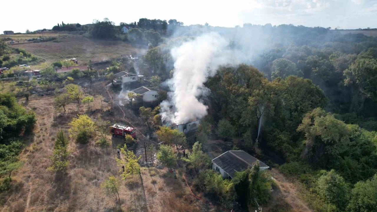 <div>Yangın, Arnavutköy Tayakadın Mahallesi Hurma Sokak üzerinde bulunan çayırlık arazide çıktı. Henüz belirlenemeyen bir nedenle başlayan yangın rüzgarın etkisiyle kısa sürede yayıldı. Alevler, çevrede bulunan iki gecekonduyu sardıktan sonra ormanlık alana ulaştı.</div> <div>Dumanları gören vatandaşların ihbarı üzerine olay yerine Arnavutköy, Başakşehir ve Sultangazi’den itfaiye ekipleri ile orman muhafaza ekipleri sevk edildi. Çok sayıda personelin müdahalesiyle yangın yaklaşık 2 saatlik yoğun çalışmanın ardından kontrol altına alındı.</div> <div>Jandarma ekipleri çevrede güvenlik önlemleri alırken, yangının çıkış nedeniyle ilgili inceleme başlatıldı.</div> <div>Yangın söndürme çalışmalarını endişeyle takip eden mahalle sakinleri ise yoğun çaba sarf eden itfaiye ve orman ekiplerine su ve meyve ikramında bulundu.</div> <div>Öte yandan, ekiplerin çalışmaları ve yanan evler dron kamerasıyla havadan görüntülendi.</div>