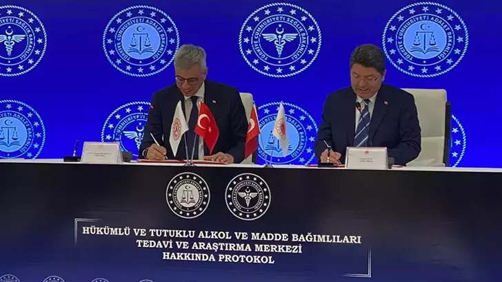 <div>Adalet Bakanlığı ile Sağlık Bakanlığı arasında, 'Hükümlü ve Tutukluların Alkol ve Madde Bağımlılığıyla Mücadele Sürecine Yönelik İş Birliği Protokolü' hazırlandı. İki bakanlık arasındaki protokol, Ankara Hakimevi'nde düzenlenen törende, Adalet Bakanı Yılmaz Tunç ve Sağlık Bakanı Kemal Memişoğlu tarafından imzalandı. Protokolle, madde bağımlılığı geçmişi olan hükümlülere tedavi ve rehabilitasyon süreçlerinde, bilimsel temele dayalı, modern ve yüksek standartlarda sağlık hizmeti sunulması, bu hükümlülerin topluma kazandırılması ve sosyal yaşama yeniden uyum sağlamaları amaçlanıyor.</div> <h3>'FİZİKİ KOŞULLARA SAHİP ÖZEL MERKEZLER OLUŞTURULACAK'</h3> <div>Törende konuşan Bakan Tunç, "Bakırköy Kadın Kapalı Ceza İnfaz Kurumunun bir bölümünü Bağımlı Tipi Yataklı Rehabilitasyon Merkezi Ceza İnfaz Kurumu olarak yeniden yapılandırılacak. Elazığ Fethi Sekin Şehir Hastanesinde yer alan Tutuklu Hükümlü Adli Psikiyatri Hastanesinin bir bölümü ayrı bir Hükümlü Alkol ve Madde Bağımlıları Yataklı Arındırma Merkezine dönüştürülecektir. Bu sayede bağımlılık geçmişi olan ve tedavi ihtiyacı olan hükümlü hastalara hizmet verecek, alanında uzman sağlık personelinin görev alacağı, modern fiziki koşullara sahip özel merkezler oluşturulacaktır" dedi.</div> <h3>'BAĞIMLILIKLA MÜCADELEYE YÖNELİK 32 BİN GÖRÜŞME GERÇEKLEŞTİRİLDİ'</h3> <div>Cumhurbaşkanlığınca hazırlanan '2024-2028 Uyuşturucu ile Mücadele Ulusal Strateji Belgesi ve Eylem Planı'nda, toplumu her türlü uyarıcı ve uyuşturucu madde kullanımından uzak tutmak amacıyla 15 gösterge ve 5 yıllık hedef belirlendiğine dikkat çeken Bakan Tunç, "Gençlerimizi zehirleyen, toplumu derinden bozan bağımlılıkla mücadele için Adalet Bakanlığı olarak yaptığımız çalışmaları, Bağımlılıkla Mücadele Yüksek Kurulu'nun oluşturduğu bu strateji ve eylem planlarıyla Yargı Reformu Strateji Belgemizdeki hedefler çerçevesinde yürütüyoruz. Bu kapsamda; uyuşturucu ve uyarıcı madde ihraç ve ithal etme suçunun cezası, 10 yıldan 20 yıla iken, 20 yıldan 30 yıla çıkardık. Uyuşturucu ve uyarıcı madde ticareti suçunun cezası 5 yıldan 15 yıla kadar iken, 10 yıldan 20 yıla çıkardık. 2025 yılının ilk çeyreğinde sadece bağımlılıkla mücadeleye yönelik çalışmalarda 32 bin 827 bireysel görüşme gerçekleştirilmiş, 189 grup çalışmasında 2 bin 98 kişiye ulaşılmış, 29 bin 994 kişi seminer, konferans gibi etkinliklere katılmış, 576 hükümlü ve tutuklu aile yakınına ulaşılarak bu süreçte aile desteği de sürece dahil edilmiştir. Tüm bu çabalar, suçun değil insanın iyileştirilmesine olan inancımızın birer yansımasıdır" ifadelerini kullandı.</div> <h3>'BAĞIMLILIK, TEDAVİ EDİLEBİLİR BİR HASTALIKTIR'</h3> <div>Bakan Memişoğlu ise bağımlılıkla mücadeleyi kararlılıkla sürdürdüklerine dikkat çekerek, "Uyuşturucu ve diğer bağımlılıklar ile bağımlılık yapıcı maddelere karşı tedavi ve rehabilitasyon hizmetlerini ülke genelinde yaygınlaştırıyoruz. Türkiye olarak bilimsel temelli ve kapsamlı bir yaklaşımla yürüttüğümüz bu mücadeleyle 115 AMATEM, 188 toplum ruh sağlık merkezi ve toplam 388 yatak kapasitesiyle vatandaşlarımıza hizmet veriyoruz. Psikiyatrik tedaviye ihtiyaç duyan tutuklu ve hükümlüler için 219 yatak kapasiteli tutuklu hükümlü adli psikiyatri servislerimiz mevcut. Ruh sağlığına özel olarak tasarlanmış 10 cezaevi merkezinde toplam 227 yatak kapasiteli özel bölümlerimiz aktif olarak çalışıyor. Bizim için sağlık sadece hastalığı tedavi etmek değil, sağlığı korumak ve sürdürülebilirlik sağlamak önemli. Bu anlayışla cezaevlerinde de dijital altyapıyla desteklenmiş bir sağlık sistemi inşa ediyoruz. Bu doğrultuda 19 ilde 51 cezaevinde görüntülü muayene sistemini devreye aldık, 9 bin 516 muayeneyi başarıyla gerçekleştirdik. İmzalanan bu protokol de bu vizyonun güçlü bir yansımasıdır. Bağımlılık bilimsel olarak tanımlanmış ve tedavi edilebilir bir hastalıktır. Bağımlılıkla mücadele yalnızca hastanın değil hepimizin meselesidir" diye konuştu.</div>