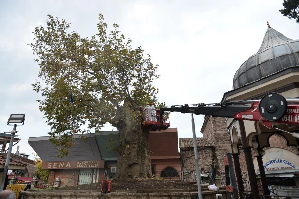 <div>Bursa’nın simge yapılarının başında gelen Ulu Cami’nin avlusunda bulunan 346 yaşındaki asırlık çınar ağacının büyük dalı, henüz bilinmeyen bir nedenle koptu. Ağacın gövdesiyle şadırvan arasında sıkışan dal, belediye ekiplerinin çalışmasıyla bulunduğu yerden kaldırıldı. Büyükşehir Belediyesi, Bursa için kadim medeniyetin sembolü olan asırlık çınarı tekrar geleceğe taşımak için zaman kaybetmeden harekete geçti.</div> <div>Park ve Bahçeler Dairesi Başkanlığı ekipleri tarafından yapılan incelemede, anıt ağacın açık yarasında çürümüş ve mantarlaşmış bölümler tespit edildi. Hızlı bir şekilde bakım ve restorasyon işlemlerine başlayan ekipler, özel ilaçlarla ‘çürümeye yol açan’ bakterileri temizledi. Ağacın iskeletine teller aracılığıyla destek uygulanırken, son aşamada özel yalıtım malzemesi kullanılarak ağacın açık yarası kapatıldı. Tedavi gören kısım boyanarak çınar ağacının formu yeniden düzenlendi.</div> <div></div> <div>Bursa Büyükşehir Belediye Başkanı Mustafa Bozbey, Ulu Cami’nin avlusundaki 346 yıllık tarihi çınar ağacının büyük dalının kopmasının ardından ekiplerin hemen bakım ve restorasyon işlemlerine başladığını söyledi. Osmanlı’nın rüyadan cihan devletine geçişinin müjdesi olan çınar ağaçlarının Bursa’nın kadim tarihinin en önemli tanıkları olduğunu söyleyen Başkan Bozbey, Büyükşehir Belediyesi’nin kentin süsü olan anıt ağaçların bakımını düzenli olarak yaptığını hatırlattı. Çevreye, doğaya ve ağaçlara verdikleri önemin altını çizen Başkan Bozbey, kentin 'Yeşil Bursa' kimliğine yeniden kavuşması için kararlılıkla çalışmaya devam ettiklerini vurguladı</div> <h3>https://www.turkhaber.com/haber/bursa-nilufer-de-sezon-cello-ve-kanunun-bulusmasiyla-basladi-4124133.html</h3>