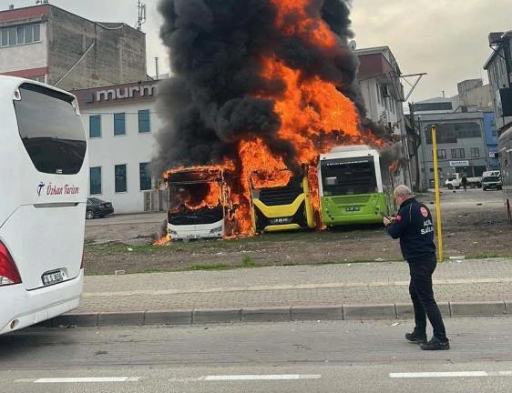<div>Olay, merkez Osmangazi ilçesi Küçükbalıklı Mahallesi Hüdavendigar Bulvarı Ak Sokak'taki otobüslerin bakımı için bırakılan dükkanın önünde meydana geldi.</div> <div>Edinilen bilgiye göre, yan yana park halindeki otobüslerden dumanlar çıkmaya başladı. Kısa sürede 3 otobüs alev topuna döndü. Gökyüzünü siyah dumanların kapladığı yangın, kentin de birçok noktasından görüldü.</div> <div>Olay yerine gelen Bursa Büyükşehir Belediyesi İtfaiye Dairesi Başkanlığı ekipleri, alevlere müdahale etti. Park halindeki diğer otobüslere alevlerin sıçramaması için itfaiye ekipleri yoğun çaba sarf etti.</div> <div>Yangın kontrol altına alınırken, otobüsler küle döndü. Polis ekiplerinin yangınla ilgili tahkikatı sürüyor.</div> <h3>https://www.turkhaber.com/haber/bursa-yildirim-da-panik-yaratan-yangin-4127028.html</h3>