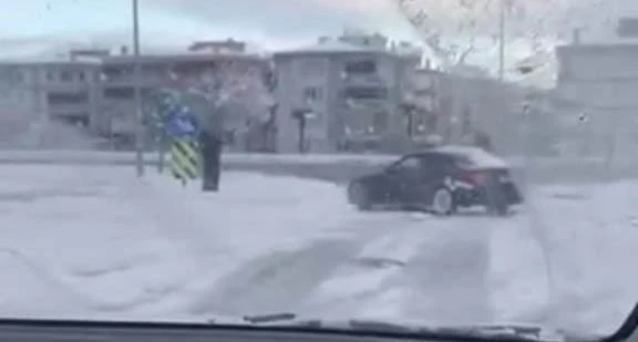 <div>Kentte etkili olan kar yağışıyla birlikte kayganlaşan yollarda tehlikeli anlar yaşandı. Kar yağışını fırsat bilen bir sürücü, otomobiliyle kavşakta drift atarak trafik güvenliğini hiçe saydı. O anlar çevredeki bir vatandaş tarafından cep telefonu kamerasıyla kaydedildi.</div> <h3>https://www.turkhaber.com/haber/son-yagislarin-ardindan-uludag-da-ki-kar-kalinligi-4131365.html</h3>