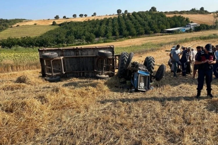 <div> Olay ilçeye bağlı Adaköy Mahallesi kırsalında bulunan bir ekin tarlasında meydana geldi.</div> <div>Alınan bilgilere göre 63 yaşındaki Yakup Yüken'in kullandığı 16 HZ 685 plakalı arkasında saman yüklü traktör bir anda kontrolden çıkarak devrildi.</div> <div></div> <div>Kazayı görenlerin ihbarı üzerine olay yerine gelen sağlık ekipleri, sürücü Yakup Yüken'in hayatını kaybettiğini belirledi. </div> <div>Kazada hayatını kaybeden Yüken'in cansız bedeni olay yeri incelemesinin ardından morga kaldırılırken, Jandarma ekipleri yaşanan olay ile ilgili soruşturma başlattı.</div>