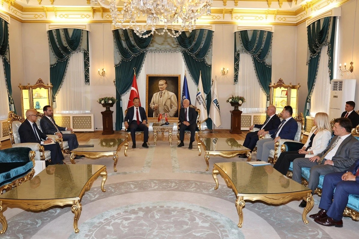 <div>Kırgız Cumhuriyeti Ankara Büyükelçisi Ruslan Kazakbaev ve beraberindeki ekip Bursa Büyükşehir Belediye Başkanı Mustafa Bozbey’i Tarihi Belediye Binası’nda ziyaret etti. Ziyarette, Türkiye ile Kırgızistan arasındaki dostane ilişkiler, kardeşlik bağları, belediyeler arasında hayata geçirilebilecek ortak projeler ve iş birliğinin geliştirilmesine yönelik konular ele alındı.</div> <div>Başkan Bozbey, Bursa’nın köklü tarihi, kültürel zenginlikleri ve güçlü sanayi altyapısıyla Kırgızistan ile her alanda ortak projelere açık olduğunu söyledi. İki ülke halkları arasındaki kardeşlik ilişkilerinin daha da güçlenmesi gerektiğine dikkat çeken Başkan Bozbey, Bursa’nın özellikle kültür, eğitim, turizm ve ticaret alanlarında iş birliği fırsatları sunduğunu belirtti.</div> <div>Büyükelçi Kazakbaev de misafirperverliğinden dolayı Başkan Bozbey’e teşekkür ederek, Bursa’nın, Türkiye’nin en büyük dördüncü kenti rolüyle Kırgız Cumhuriyeti için büyük bir değer taşıdığını söyledi. Kazakbaev, iki ülke arasındaki tarihi ve kültürel bağların daha fazla ortak çalışma ile pekiştirilebileceğini dile getirdi.</div> <div>Ziyaret, karşılıklı hediye takdimi ve günün anısına çekilen hatıra fotoğrafının ardından sona erdi.</div> <h3>https://www.turkhaber.com/haber/kyk-yurtlari-hakkinda-aciklama-4119306.html</h3>