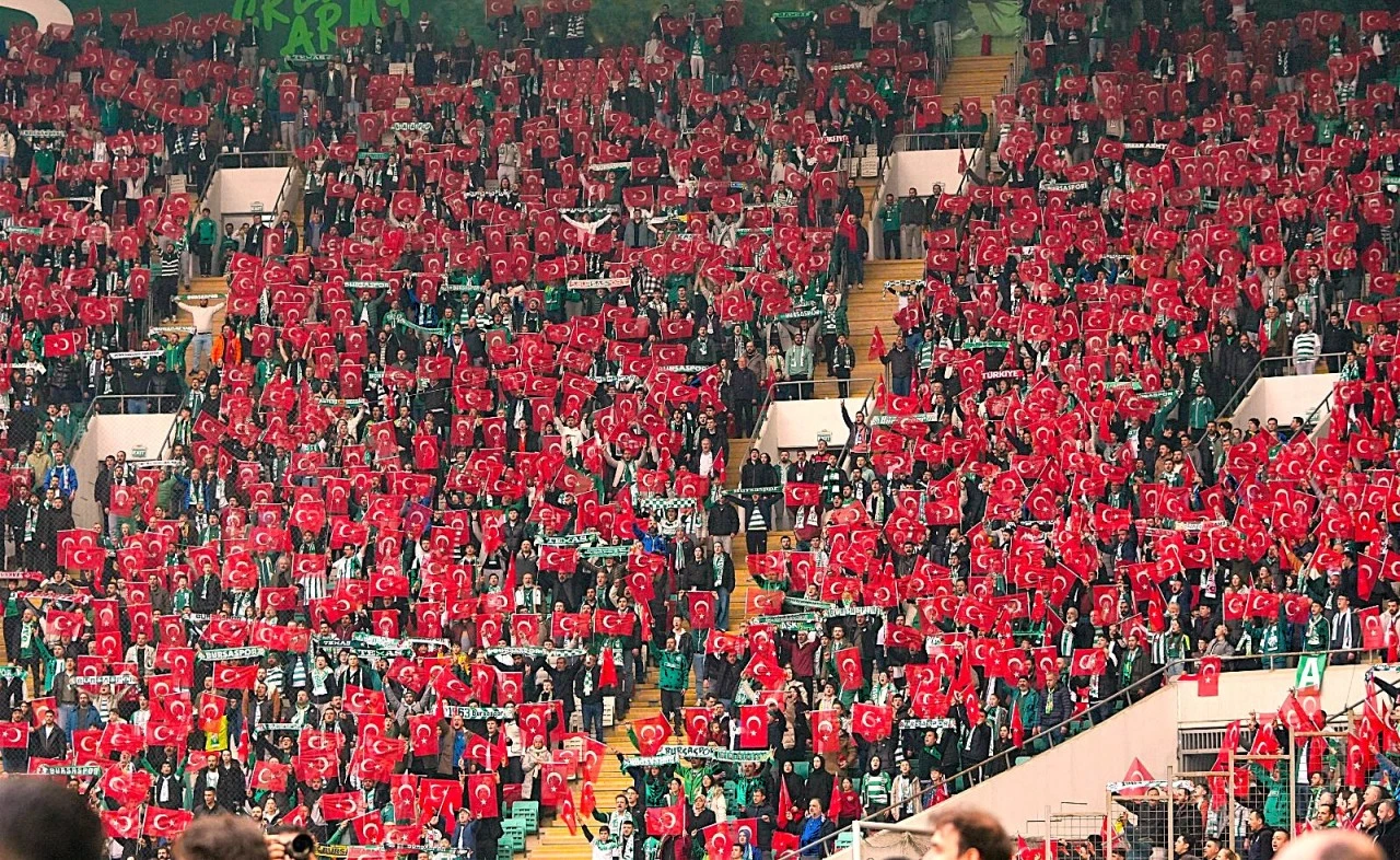 <div><strong></strong> Bursa Büyükşehir Belediyesi, milli birlik ve beraberlik ruhunu tribünlere taşıdı.Bursa Büyükşehir Belediyesi, Bursaspor–Yeni Mersin İdman Yurdu karşılaşması öncesinde Atatürk Spor Kompleksi Matlı Stadyumu tribünlerini Cumhuriyetimizin ve milli bağımsızlığımızın en güçlü simgelerinden biri olan Türk bayraklarıyla donattı.</div> <h4>STADYUM KIRMIZI BEYAZA BÜRÜNDÜ</h4> Dağıtılan bayraklarla stadyum adeta kırmızı-beyaza bürünürken, Bursasporlu taraftarların elinde yükselen 40 bin Türk bayrağı tribünlerde görsel bir şölen oluşturdu. Vatandaşlar, milli değerlere sahip çıkmanın gururunu hep birlikte yaşadı. Bursasporlu taraftarlar, bayrak dağıtımıyla milli birlik ve beraberliğe değer katan bu organizasyon dolayısıyla Bursa Büyükşehir Belediye Başkanı Mustafa Bozbey’e teşekkür etti.