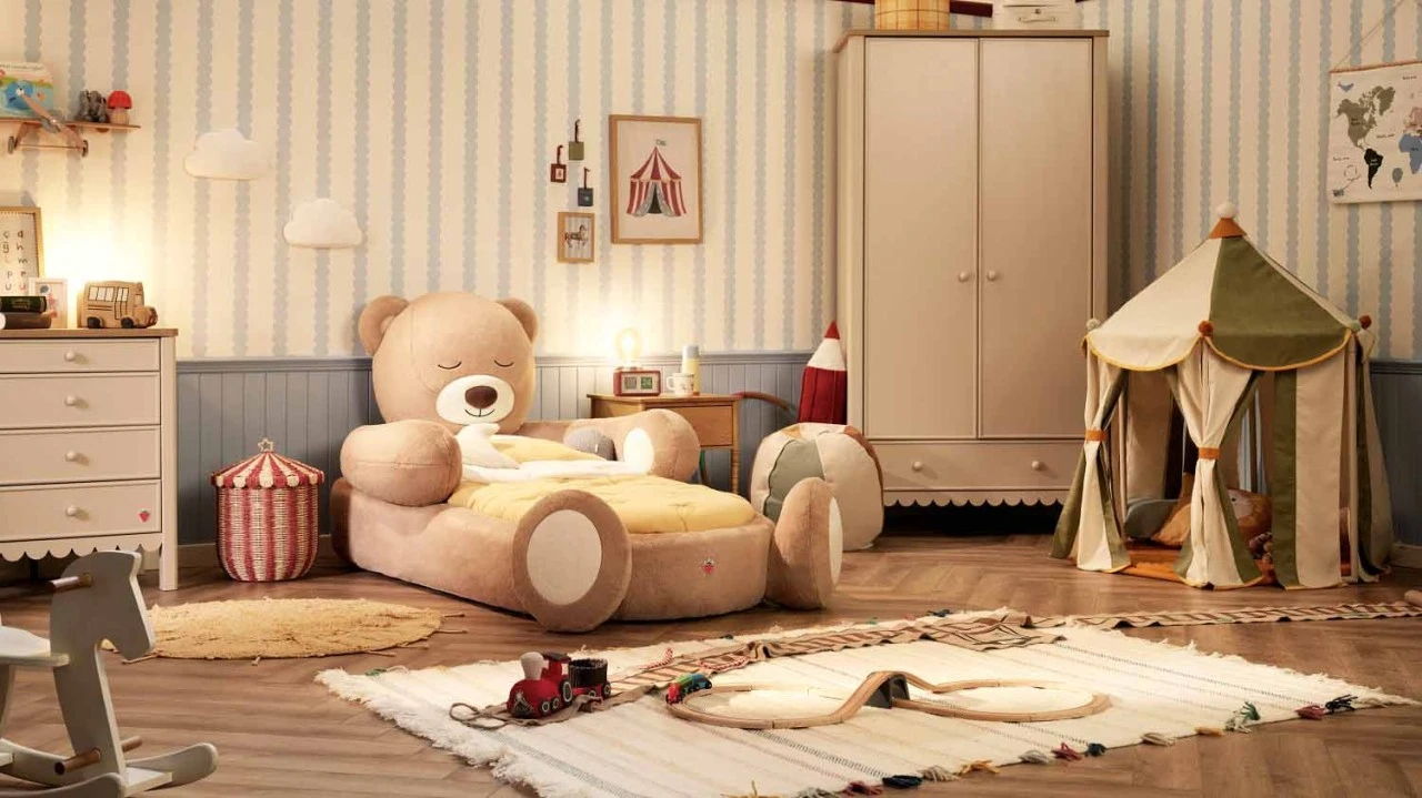 <div> Uyku Arkadaşım Koleksiyonu’nun ilk üyesi olan Teddy, bu geçişi hem çocuklar hem de ebeveynler için daha sakin, güvenli ve tanıdık bir deneyime dönüştürmeyi amaçlıyor.</div> <div>Gün içinde oyunların bir parçası olan Teddy, akşam olduğunda çocuğun uyku ritmine uyum sağlayan bir uyku arkadaşına dönüşüyor. Yumuşacık pelüş dokusu, temas ettiği anda sıcak ve tanıdık bir his yaratırken, uyku alanını çocuk için daha huzurlu bir ortama taşıyor.</div> <div>Bu dönemde çocuklar hem daha bağımsız olmak isterken hem de kendilerini güvende hissetmeye ihtiyaç duyuyor. Teddy Ayıcık Karyola, tam da bu ihtiyaca yönelik yar çözüm sunuyor. Ayıcığın kollarını andıran yan korkulukları, çocuğu doğal bir korkuluk gibi çevreleyerek yatakta güvenli bir sınır oluşturuyor. Pelüş yüzeyi ise temas ettiği anda yumuşacık bir his vererek uyku alanını sıcacık bir atmosfere dönüştürüyor.</div> <div>Montessori yaklaşımını destekleyen Teddy Ayıcık Karyola, yere yakın yapısıyla çocuğun yatağa kendi başına çıkıp inebilmesini destekliyor. Her zaman onu odasında bekleyen bir uyku arkadaşı olarak bağımsız uyku alışkanlığı geliştirme sürecine doğrudan destek oluyor.</div> <div>Yumuşak hatları ve sevimli duruşuyla odanın atmosferini değiştiren Teddy Ayıcık Karyola, gündüz hayallerin şekillendiği bir oyun alanı; akşam olduğunda ise sakin ve güvenli bir uyku köşesi olarak konumlanıyor.</div> <h3>https://www.turkhaber.com/haber/dunyaca-unlu-moda-tasarimcisi-valentino-garavani-hayatini-kaybetti-4132079.html</h3>
