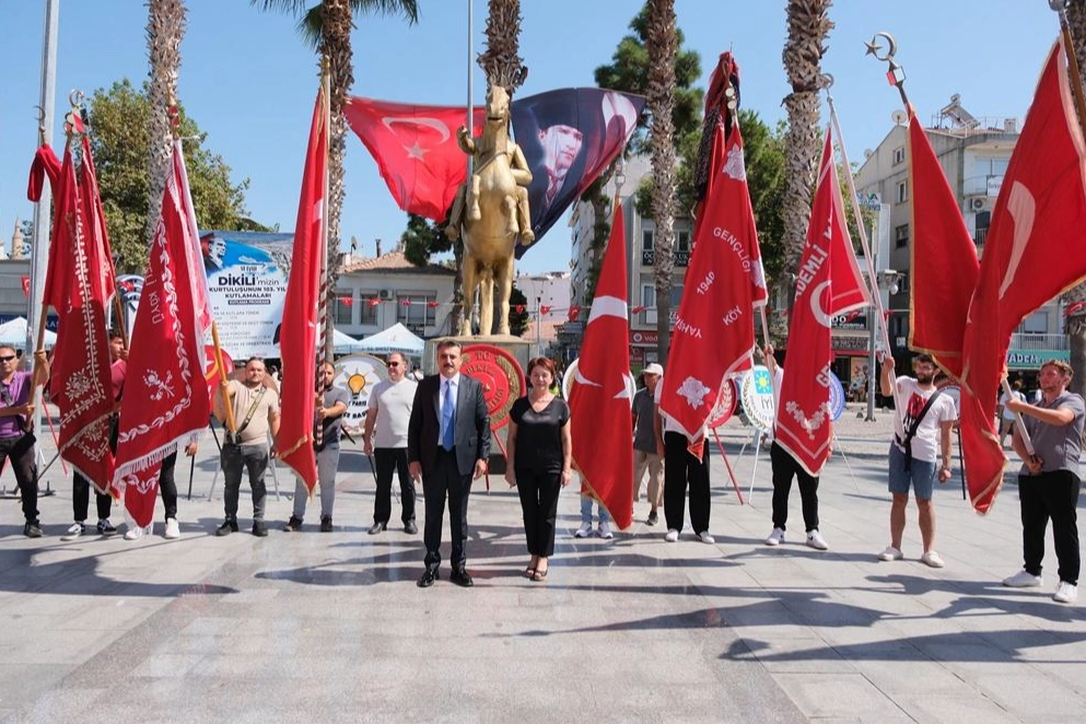 <div>14 Eylül Dikili ve Çandarlı’nın düşman işgalinden kurtuluşunun 103. yıl dönümü iki gün boyunca coşkuyla kutlandı.</div><div>Dikili Belediyesi öncülüğünde Çandarlı’da düzenlenen program kapsamında tarihi Çandarlı Kalesi içinde resim sergisi açıldı. Koçanlı Köşkü Oteli’nde fotoğraf sergisi ile söyleşi, Çandarlı Batı Sahili’nde yelken seyri etkinlikleri gerçekleştirildi. Aynı günün akşamında Belediye Ek Hizmet Binası önünden başlayıp Batı Sahili Kale önünde sona eren ve çok sayıda vatandaşın Türk bayrakları ve Atatürk posterleri ile katılığı Kurtuluş Fener Alayı’na sahil esnafı da destek verdi.</div> <div>Dikili Atatürk Meydanı’nda gerçekleşen resmi kutlama programına Dikili Kaymakamı Cevat Gün, Dikili Belediye Başkanı Adil Kırgöz, Cumhuriyet Başsavcısı Mehmet Akif İpek, gaziler, kamu kurum müdürleri, daire amirleri, belediye meclis üyeleri, meslek odaları, sivil toplum kuruluşları, siyasi partiler ve çok sayıda vatandaş katıldı. Çelenk sunumu ve Dikili Belediyesi Halk Oyunları Topluluğu’nun zeybek gösterileri sonrasında Şehit Sami Akbulut Caddesi’nde geçit töreni gerçekleştirildi.</div> <div>Dikili Belediyesi öncülüğünde düzenlenen Bülent Ecevit Meydanı'ndan başlayıp konser alanı Atatürk Meydanı’nda son bulan 14 Eylül Kurtuluş Yürüyüşü'ne binlerce Dikilili katılırken, çok sayıda vatandaş evlerinin balkonlarından ay yıldızlı bayrakları ve Atatürk posterleri ile destek verdi. Dikilili sanatçı Ercan Özüak ve Orkestrası’nın birbirinden değerli eserleri seslendirdiği konser ile kutlama programı sona erdi.</div> <div>Kurtuluş coşkusunu Dikili ve Çandarlı haklıyla birlikte yaşayan Belediye Başkanı Adil Kırgöz, “Tüm imkansızlıklara rağmen Ya İstiklal Ya Ölüm! diyerek esarete boyun eğmeyenlerin başlattığı Milli Mücadele’nin Dikili ve Çandarlı’da zaferle taçlandığı 14 Eylül Kurtuluş günümüzün 103. Yılını hemşehrilerimiz ile kutlamanın mutluluğunu ve gurunu yaşıyoruz. Dikili’miz ve Çandarlı’mız’ın 103 yıl önce bugün 3 yıl 3 ay süren esaretten kurtulduğu bu anlamlı günde başta Ebedi Başkomutanımız Gazi Mustafa Kemal Atatürk başta olmak üzere tüm yol arkadaşlarını ve bu cennet vatan uğruna şehit düşmüş tüm kahramanlarımızı rahmetle anıyor, aziz hatıraları önünde saygıyla eğiliyorum. Ruhları şad olsun.” dedi.</div>