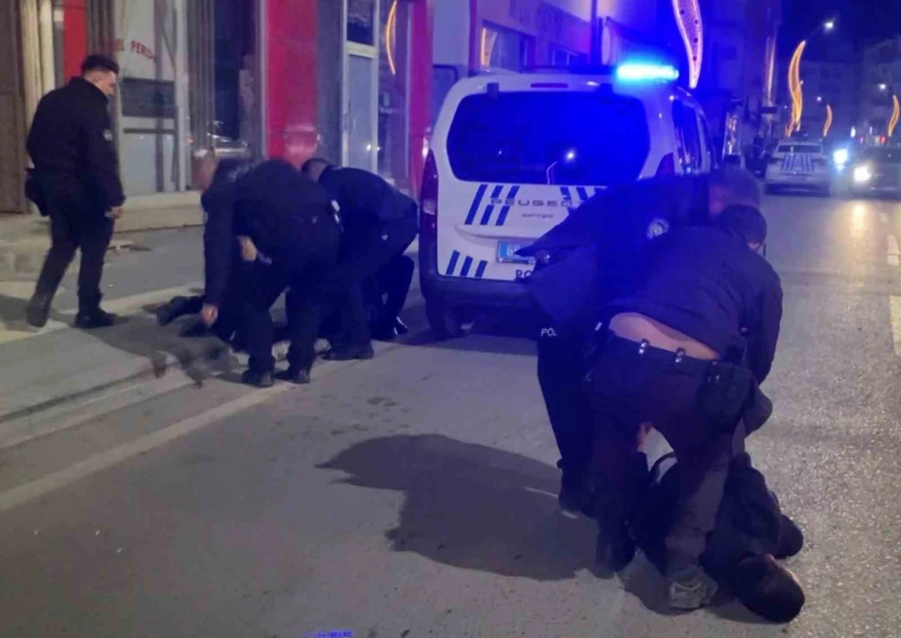 <div>Olay, Büyük Bölcek Mahallesi Büyük Bölcek Caddesi üzerinde yaşandı. Edinilen bilgiye göre, cadde üzerinde esnaflık yapan adamın dükkanını, "Eşime küfretmişsin" diyerek ellerinde sopalarla basan 2 şahıs dükkanda maddi hasara yol açarken, sesleri duyan vatandaşlar durumu 112 Acil Çağrı Merkezine bildirdi. İhbar üzerine olay yerine polis ekipleri sevk edilirken, bu sırada tartışma kavgaya dönüşünce taraflar arasında arbede yaşandı. Kısa sürede olay mahalline gelen asayiş ekipleri kavgaya müdahale ederken, ısrarla birbirlerine saldıran şahıslara biber gazlı müdahalede bulunuldu. Ardından şahıslar gözaltına alınmak istenirken polise direnişlerini sürdürdü. Şahıslardan biri polis aracına bindirilirken, diğeri bindirilmek üzereyken basın mensuplarına saldırmak istedi. Polisin müdahalesiyle saldırı önlenirken, şahıslar biri basın mensuplarına küfürler yağdırdı. O anlar anbean kameraya yansıdı</div> <div>. Olayla ilgili gözaltına alınan 4 kişi, ifadeleri alınmak üzere polis merkezine götürüldü.</div>