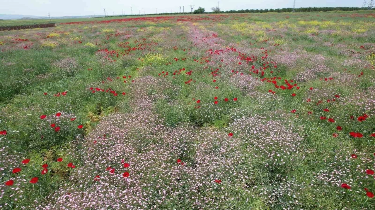 Adıyaman’daki ekili alanlarda çiçeklerin açmasıyla renk cümbüşü ortaya çıktı. Adıyaman’da ekili alanlar çiçeklerin açmasıyla renklendi. Yeşilin hakim olduğu alanlarda açan rengarenk çiçeklerle renk cümbüşü ortaya çıktı. Yağışların zaman zaman devam ettiği kentte, güneşin de çıkmasıyla birlikte doğanın eşsiz güzelliği tüm renkleriyle kendini gösterdi. Gelincikler kırmızı rengiyle yeşilin hakim olduğu ekili alanları kızıla boyarken, sarı ve pembe çiçekler de rengarenk bir görüntünün ortaya çıkmasına neden oldu. Rengarenk bir örtüyle kaplanan ekili alanlar, eşsiz görüntüler ortaya çıkardı.
