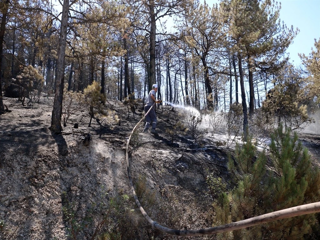 <div>Eskişehir'in Seyitgazi ilçesi Fethiye Mahallesi'nde çıkıp, Afyonkarahisar'ın İhsaniye ilçesine bağlı Sarıcaova köyüne sıçrayan orman yangını, 4'üncü günde havadan ve karadan yürütülen müdahaleler sonucu büyük oranda kontrol altına alındı. Sarıcaova ile Alanlı köyleri arasındaki dağlık alanın yamacında devam eden müdahaleler sonrası bölgede soğutma çalışmalarına başlandı. Afyonkarahisar sınırındaki ekiplerin tamamı soğutmaya yönelik çalışmalarına devam ederken, rüzgar nedeniyle yangının tekrar başlama riskine karşı da ekipler teyakkuza geçti. Duman çıkan ağaçlar ve köklere köpük ve kürekle müdahale edilerek, tekrar alevlenme ihtimalini ortadan kaldırmaya yönelik çalışma yapıldı.</div> <div></div> <div><strong>'MÜDAHALELER ARALIKSIZ SÜRDÜRÜLMEKTE'</strong></div> <div>Afyonkarahisar Valiliği'nden yapılan açıklamada, "Eskişehir'in Seyitgazi ilçesi Fethiye Mahallesinde meydana gelen ve Afyonkarahisar'ın İhsaniye ilçesi Sarıcaova köyüne ulaşan orman yangını büyük oranda kontrol altına alınmıştır. Yangının enerjisi düşürülürken spot yanımları önlemek, etrafı çevrelenen yangın alanını soğutmak için havadan ve karadan müdahaleler aralıksız sürdürülmektedir. Rüzgarın artış ihtimaline karşı ekiplerimiz teyakkuz halindedir. Bölgede yürütülen çalışmalarda cansiperane bir şekilde büyük fedakarlıkla görev alan tüm ekiplerimize kolaylıklar diliyoruz" denildi.</div> <div><strong>'SON DUMAN KAPANANA KADAR BURADAYIZ'</strong></div> <div>Soğutma çalışmalarını sürdüren Afyonkarahisar Orman İşletme Müdürlüğü İhsaniye Şefliğinde görevli Emre Kaan Gül, "Şu an yaptığımız çalışma, kimyasal köpük çalışmasıyla ateşin tamamen oksijenini kapatıyoruz, tüten yerleri soğutuyoruz, son duman kapanana kadar buradayız. Soğutma çalışmaları bugün başladı, kontrol altına alındıktan sonraki gün bugün artık için için yanma yok. Şu anda köklerde hafif tütmeler var, onları da Allah'ın izniyle kapatacağız. Birkaç gün daha buralardayız" dedi.</div> <h3>https://www.turkhaber.com/haber/30-bin-tl-icin-baba-ve-oglunu-oldurdu-4115476.html</h3>