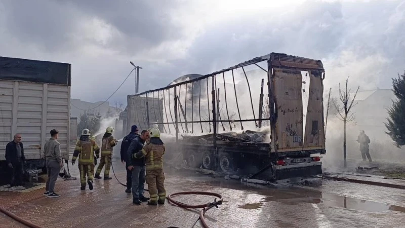 <div>Yangın, saat 12.30 sıralarında Mesudiye Mahallesi Meydan Sokak üzerinde meydana geldi.</div> <div>Edinilen bilgiye göre, park halindeki 16 BRT 373 plakalı çekiciye bağlı 16 BPA 863 plakalı dorsede yüklü bulunan süngerler henüz bilinmeyen bir nedenle yanmaya başladı. Kısa sürede büyüyen alevler, hemen yanında park halinde bulunan mobilya yüklü 16 BDD 870 plakalı dorsenin de tutuşmasına neden oldu.</div> <div></div> <div>Alevleri fark eden vatandaşlar durumu İnegöl İtfaiyesi'ne bildirdi. İhbar üzerine olay yerine çok sayıda itfaiye ekibi sevk edildi. Yangın sırasında elektrik tellerinin de zarar gördüğü, zaman zaman patlamaların yaşandığı öğrenildi.İtfaiye ekiplerinin yoğun çalışması sonucu yangın kontrol altına alınarak söndürüldü. Yangın sonucunda sünger yüklü tır ve dorsesi tamamen yanarak kullanılamaz hale gelirken, mobilya yüklü diğer dorsede de maddi hasar oluştu.</div> <div>Yangının çıkış nedeninin belirlenmesi için inceleme başlatıldı.</div> <h3>https://www.turkhaber.com/haber/haber-4131889.html</h3>
