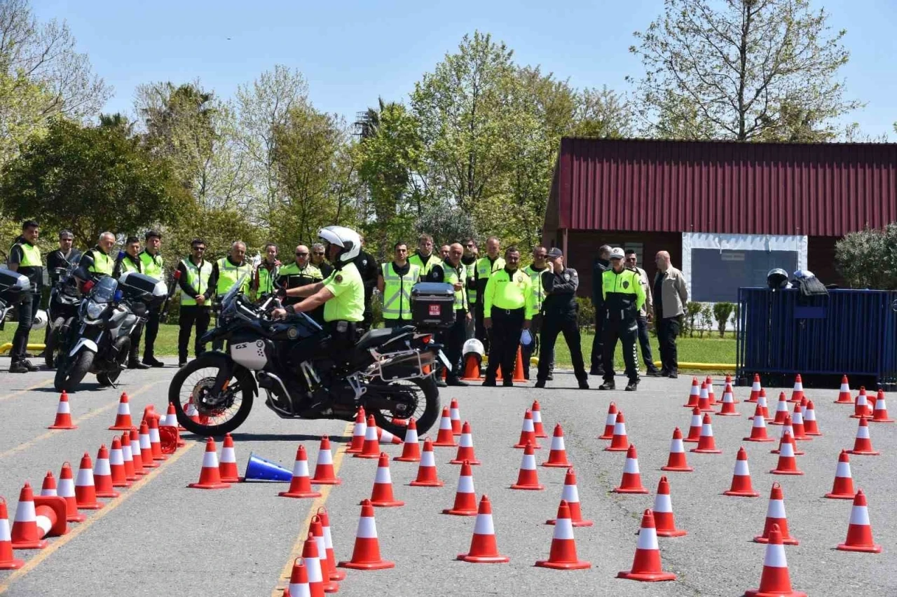 SAMSUN (İHA) – Samsun İl Emniyet Müdürü Ahmet Arıbaş, İl Emniyet Müdürlüğü bünyesinde devam eden motosikletli şahin timleri eğitim kursunu yerinde denetleyerek kursiyer personelle bir araya geldi. Karayolu Trafik Haftası kapsamında gerçekleştirilen ziyarette, 21 personelin katılımıyla süren eğitim faaliyetlerini inceleyen İl Emniyet Müdürü Arıbaş, kurs kapsamında verilen teorik ve pratik eğitim süreçleri hakkında bilgi aldı. Arıbaş, motosikletli ekiplerin trafik güvenliğinde etkin rol üstlendiğini vurguladı. Trafik güvenliği konusunda farkındalığın artırılmasının önemine dikkat çeken Arıbaş, "Trafikte görünürlüğü ve hareket kabiliyeti yüksek motosikletli ekiplerimiz, trafik denetimlerinde etkin görev alacak. Bu kursu başarıyla tamamlayan personelimizle sahada daha güçlü olacağız" dedi. Kurs kapsamında personele motosiklet hâkimiyeti, güvenli sürüş teknikleri ve görev esnasında karşılaşılabilecek muhtemel durumlara yönelik uygulamalı eğitimler veriliyor. Samsun İl Emniyet Müdürlüğü, trafik güvenliği ve kamu düzeninin sağlanması amacıyla eğitim faaliyetlerine aralıksız devam ediyor.