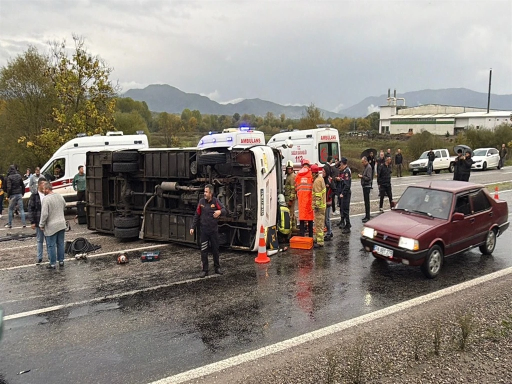 <div>Kaza, saat 07.30 sıralarında Bartın-Karabük kara yolunun Muratbey köyü mevkisinde meydana geldi.</div> <div>Tekstil işçilerini taşıyan Birol Erkiş (52) yönetimindeki 74 AAV 314 plakalı servis midibüsü kontrolden çıkarak devrildi. Yoldan geçen diğer sürücülerin ihbarı üzerine kaza yerine çok sayıda sağlık, polis ve itfaiye ekibi sevk edildi.</div> <div></div> <div>Sağlık ekipleri, araçta bulunan işçilerden Fatma Demircan'ın hayatını kaybettiğini belirledi. Yaralanan 19 kişi ise ilk müdahaleleri sonrası ambulanslarla çevredeki hastanelere kaldırıldı. Demircan’ın cansız bedeni de inceleme sonrası morga götürüldü.</div> <div>Ekiplerin kaza yerinde incelemesi ve midibüsün kaldırılması için çalışmaları sürerken, Bartın- Karabük kara yolunun Karabük istikametine ulaşım tek şeritten kontrollü olarak sağlanıyor</div> <h3>https://www.turkhaber.com/haber/alkollu-belediye-otobusu-surucusu-bariyerlere-saplandi-2-yarali-4124273.html</h3>