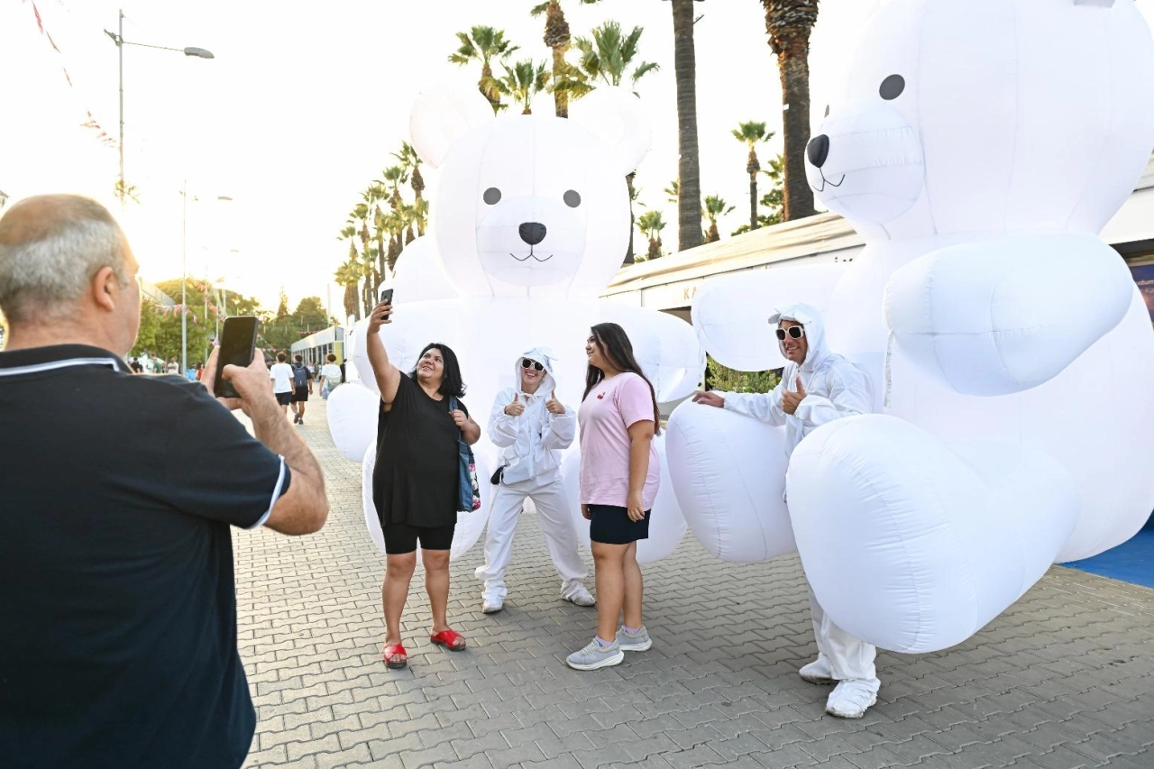 İzmir Enternasyonal Fuarı, bu yıl da kültür-sanat etkinlikleriyle ziyaretçilerine unutulmaz anlar yaşatıyor. Fuar alanında gerçekleşen uluslararası sokak gösterileri, dünyanın dört bir yanından gelen sanatçıları İzmirlilerle buluşturuyor.İzmir Büyükşehir Belediyesi'nin ev sahipliğinde, İZFAŞ tarafından düzenlenen 94. İzmir Enternasyonal Fuarı, kültür ve sanat etkinlikleriyle şehre renk katıyor. Fuarın en çok ilgi gören etkinliklerinden olan uluslararası sokak gösterileri, dünyanın farklı ülkelerinden gelen sanatçıları ziyaretçilerle buluşturuyor. Mizah ve jonglörlükle dolu eğlenceli şovlardan dev ayıcıkların neşeli yürüyüşlerine, modern illüzyonlardan su perdesi üzerine yansıyan büyüleyici gölge danslarına kadar uzanan performanslar, fuar ziyaretçilerine adeta görsel bir şölen sunuyor. Her yaştan izleyicinin ilgisini çeken gösteriler, fuarın en renkli etkinlikleri arasında yer alıyor. İlgi gören gölge dansı Belçikalı ekip Shadow Dance – Sacred Places, Kaskatlı Havuz’da su perdesi üzerine yansıtılan gölge danslarıyla görsel bir şölen sunuyor. Işık ve suyun birleşmesiyle ortaya çıkan hareketli silüetler, müziğin de etkisiyle masalsı bir atmosfer yaratıyor. Sanatsal yorumlarıyla dikkat çeken ekip performans sonunda uzun süre alkış alıyor. Hayal gücü ve mizah bir arada Arjantinli sanatçı Edgar Groll, hayal gücü ve mizahı bir araya getirdiği gösterisiyle fuarın öne çıkan isimleri arasında yer alıyor. Jonglörlük performansları, kristal toplarla yarattığı hipnotik hareketler ve zürafa olarak bilinen yüksek tek tekerlekli bisiklet üzerinde klarnet çalması, izleyenlerden uzun süre alkış alıyor. Groll’un enerjik sunumu ve izleyiciyle kurduğu sıcak bağ, sokak gösterilerine farklı bir renk katıyor. Bol kahkaha ZIRK Comedy topluluğu da İtalya’dan gelerek fuar sokaklarına renk katıyor. Palyaçoluk ve sihir unsurlarını harmanlayan ekip, izleyenleri gerçek ile hayalin arasında dolaştırıyor. Ekibin gösteri boyunca farklı mekanlara uyum sağlayan interaktif performansı, her yaştan katılımcıya keyifli anlar yaşatıyor. İzleyicilerin kahkahalarla eşlik ettiği ve ekiple birlikte fotoğraf çektirdiği anlar, fuarın en unutulmaz karelerini oluşturuyor. Sihir gösterisi Güney Koreli illüzyonist Charming Jay, modern sihir numaralarını mizah ve sahne enerjisiyle birleştirerek yaptığı gösterileriyle ziyaretçilerin büyük beğenisini topluyor. Jay’in performansı, izleyicileri sahnenin bir parçası haline getirerek interaktif bir deneyim sunuyor. Hem çocuklar hem de yetişkinler için unutulmaz bir şova dönüşen gösteri, büyük ilgi görüyor. Işıklı sevimli dev ayıcık İspanya’dan gelen Teddy Bears ekibi, dev boyutlu ışıklı sevimli dev ayıcıklarıyla fuar alanında farklı bir atmosfer oluşturuyor. Neşeli yürüyüşleri ve izleyicilerle kurdukları eğlenceli iletişim, özellikle çocukların yoğun ilgisini çekiyor. Renkli görüntüler ve fotoğraf kareleri, ziyaretçiler için fuarın en keyifli anlarını yaşatıyor.