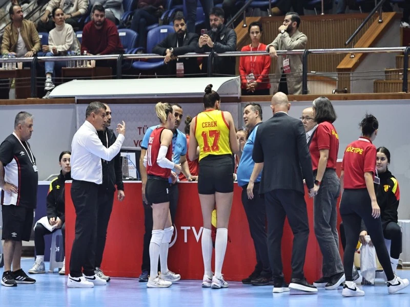 <div>İzmir Atatürk Voleybol Salonu çevresinde karşı karşıya gelen iki takım taraftarları birbirlerine taş, şişe ve patlayıcı madde atarken; olaylar polisin araya girmesiyle büyümeden önlendi. Yaşanan gerginlikte bazı taraftarların yaralandığı bildirildi.</div> <div></div> <div>Ancak maçın başlamasıyla birlikte gerilim yeniden tırmandı. Göztepe ve Beşiktaşlı taraftarlar salonda karşılıklı küfürleşirken, yapılan uyarı anonslarına rağmen sahaya yeniden yabancı madde atılmasıyla hakemler ve voleybolcular ilk sette durum 8-9 iken soyunma odasına gitti. Voleybolcuların sahaya dönmesinin ardından emniyet maçın seyircisiz oynanmasına karar verdi ve seyirciler salondan çıkarılmaya başladı. Maç salon boşaltıldıktan sonra kaldığı yerden devam edecek.</div> <h3>https://www.turkhaber.com/haber/uludag-yolu-buz-pistine-dondu-4128095.html</h3>