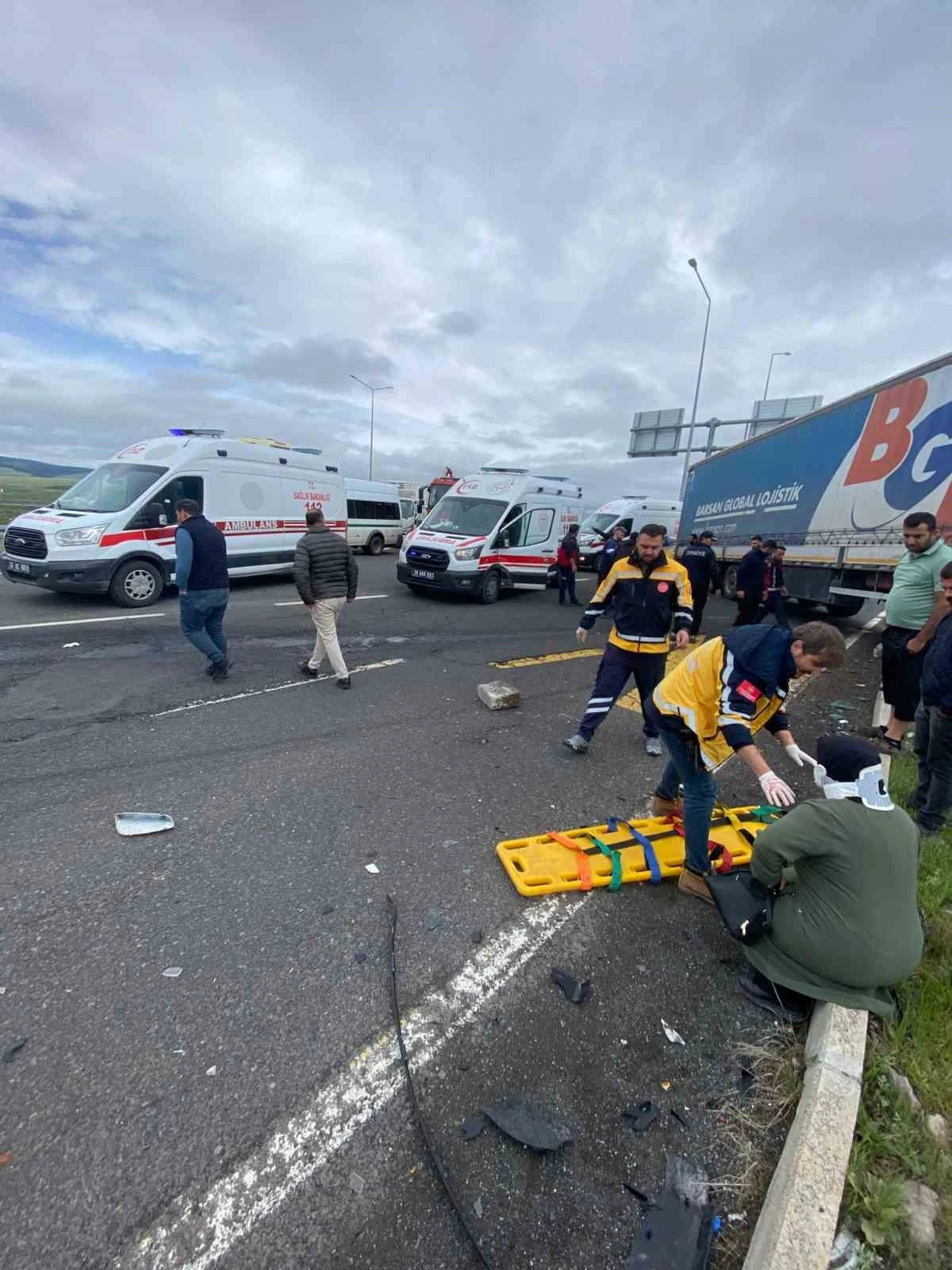 Kars’ta tır ile otomobil çarpıştı, feci kazada 2’si ağır 4 kişi yaralandı. Kaza; Kars’ın Sarıkamış ilçesinde meydana geldi. Kars’tan Sarıkamış istikametine seyir halindeki otomobil ile Sarıkamış’tan Kars’a seyir halindeki tır, Sarıkamış kavşağında çarpıştı. Kazayı gören vatandaşlar durumu 112 Acil Merkezi’ne bildirdi. Olay yerine sağlık, polis, AFAD ve itfaiye ekipleri sevk edildi. Trafik ekipleri kaza yerinde güvenlik önlemleri alırken, yaralılar sıkıştıkları araçlardan çıkarılarak Sarıkamış Devlet Hastanesi’ne sevk edildi. Hastane de tedavi altına alınan yaralılarından 2’sinin durumun ağır olduğu öğrenildi. Öte yandan tır ile otomobilin çarpıştığı bölge adeta savaş alanına döndü. Tır ile çarpışan otomobil hurda haline gelirken, trafik levhaları ise yan yattı. Araçların parçaları ise etrafa savruldu. Kaza ile ilgili tahkikat başlatıldı.