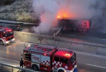 <div>Cam kumu yüklü araçtan yükselen dumanları fark eden sürücü, tırı yol kenarına çekerek durumu 112 Acil Çağrı Merkezi’ne bildirdi. İhbar üzerine olay yerine sevk edilen itfaiye ekipleri, yangına kısa sürede müdahale ederek alevleri kontrol altına aldı. Yangında can kaybı ya da yaralanma yaşanmazken, tırda maddi hasar meydana geldi.</div> <div></div> <div>Yangın nedeniyle karayolunda kısa süreli trafik yoğunluğu yaşandı. İtfaiye ekiplerinin soğutma çalışmalarını tamamlamasının ardından yol yeniden trafiğe açıldı. Olayla ilgili inceleme başlatıldı.</div>