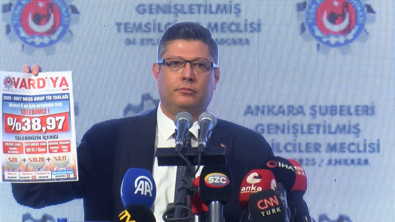 <div>Özel sektördeki yaklaşık 300 bin çalışanı ilgilendiren ve Türk Metal Sendikası ile MESS arasında imzalanacak Metal İşkolu Grup Toplu İş Sözleşmesi süreci başladı. Türk Metal Sendikası Genel Başkanı Uysal Altundağ, toplu iş sözleşmesi için hazırlanan sözleşme taslağını Ankara Şubeleri Genişletilmiş Temsilciler Meclisi toplantısında açıkladı.</div> <h3>'İLK 6 AY İÇİN ZAM TALEBİMİZ YÜZDELİK ZAM ARTI SEYYANEN ZAM'</h3> <div>Altundağ, "2025- 2027 yılları arasında iki yıllık olacak şekilde teklif ettiğimiz Türk Metal-MESS Grup Toplu İş Sözleşmesi taslağımızda ilk 6 ay için zam talebimiz yüzdelik zam artı seyyanen zam formülünden oluşuyor. Sözleşme kapsamındaki üyelerimizin 31 Ağustos 2025 tarihindeki saat ücretlerine 1 Eylül 2025'ten geçerli olmak üzere ilk 6 ay için önce 20 zam talep ediyoruz. Bu zammın uygulanmasının ardından yine tüm üyelerimizin saat ücretlerine ilk 6 ay için seyyanen 35 lira daha zam talep ediyoruz. Böylece istediğimiz bu iki zammın sonucu olarak MESS Grup Toplu İş Sözleşmesi kapsamındaki üyelerimizin saat ücretlerine ilk 6 ay için ortalama yüzde 35,2 zam talep etmiş oluyoruz" dedi.</div> <div>Altundağ, sosyal haklar konusundaki taleplerini de dile getirerek, "Toplu sözleşmemizin ikinci 6 ayı için saat ücretlerine 6 aylık enflasyon oranında zam, üçüncü altı ayı için yine saat ücretlerin, gerçekleşecek 6 aylık enflasyona artı 3 puan iyileştirmeyle zam, dördüncü ve son 6 ay için ise yine enflasyon oranında zam talep ediyoruz. Sözleşmemizin içerisindeki Ramazan Bayramı yardımı, eğitim yardımı, yakacak yardımı gibi sosyal yardımlarımıza ise yıllık yüzde 65 zam talep ediyoruz. Diğer sosyal yardımlarımızdan farklı olarak Kurban Bayramı yardımının ise yıllık 80 arttırılmasını talep ediyoruz. Bütün bu sosyal yardımlarımızın ikinci yıllarında ise gerçekleşen yıllık enflasyona artı 5 puan iyileştirmeyle zam yapılmasını da talep ediyoruz. Sosyal yardımlarımıza istediğimiz bu zamlarla birlikte birinci 6 ay için talep ettiğimiz toplam zam oranımız böylece ortalama yüzde 38,97'yi buluyor" ifadelerini kullandı.</div> <div>(DHA)</div>