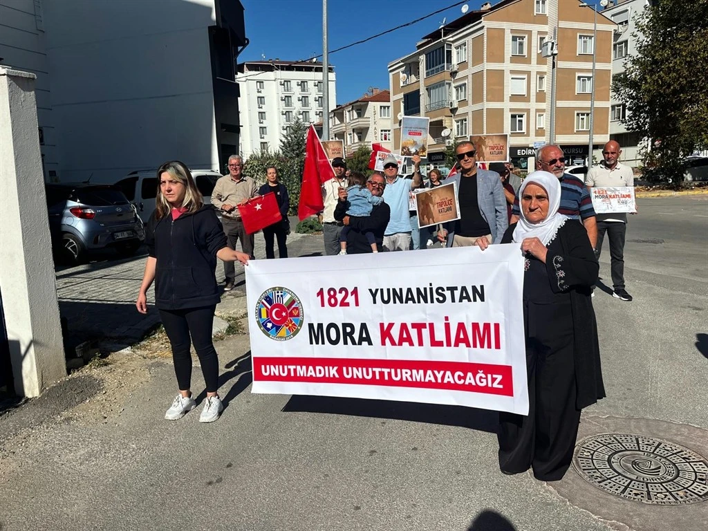 <div>Konfederasyona bağlı sivil toplum kuruluşu üyeleri, Şükrüpaşa Mahallesi’nde bulunan Yunanistan Konsolosluğu’na gelerek, yaklaşık 204 yıl önce Yunanistan’da zulüm gören ve Mora Yarımadası’nın Tripoliçe kentinde katledilen 40 bin Türk için konsolosluğa siyah çelenk bıraktı.</div> <div>Babaeski Balkan Türkleri Dayanışma Derneği Başkanı Gülsüm Kaynaklar, 23 Eylül 1821’de Tripoliçe katliamını her yıl olduğu gibi bu yılda unutmadıklarını belirterek, "204 yıl önce Hristiyanlara huzur, konsoloslara saygı, Türklere ölüm düsturu ile Mora Yarımadası'nda tek bir Müslüman kalmayana kadar kadın ve çocuklar dahil Türklerin katledildiği bu vahşet sözde modern Avrupa’nın gözleri önünde gerçekleştirilmiştir. On binlerce Türk’ün katledildiği, yolları, alanları ölülerin doldurduğu, üstünde atların gezindiği, parası olduğunu düşündükleri esirleri konuşturmak, mallarını yağmalamak için tek tek topladıkları, tarifsiz işkencelerin yapıldığı, kollarının bacaklarının kesildiği, ateş üzerinde yavaş yavaş yakıldığı, hamile kadınların karınlarının, kafalarının kesildiği, çocukların acımasızca parçalandığı, aç bırakıldığı, içme suyu kuyularının içine cesetlerin doldurulduğu veba salgının hortlatıldığı, anlatılamaz işkenceleri yapanları tarih affetmedi, yazdı, bugünlere taşıdı" dedi.</div> <div></div> <div><strong>‘ZULMÜ ASLA UNUTMAYACAĞIZ’</strong></div> <div>Yunan yetkililerin, günümüzde de Batı Trakya Türk azınlığına yönelik uygulamalarla insan haklarını açıkça ihlal etmeye devam ettiğini söyleyen Kaynaklar, "Batı Trakya Türk azınlık okullarını sudan bahane ile kapatıyor, Müslüman cemaatin kendi liderlerini seçme hakkını gasp ediyor, Türk azınlığa cemiyetlerinde Türk ifadesini kullanmasına izin vermiyor. Yunanistan’ı kendi tarihi ile yüzleşip gerçekleştirdiği katliamlardan dolayı özür dileyerek, günümüzde de Lozan Antlaşması'na uygun bir şekilde Türk azınlığın temel insan haklarının koruyucusu olmaya davet ediyoruz. Soykırımın yıl dönümü vesilesi ile bir kez daha bu katliamları yapanları, göz yumanları insanlığın vicdanına havale ettiğimizi bu zulmü asla unutmayacağımızı, affetmeyeceğimi belirtiyor, Mora’da 23 Eylül 1821 tarihinde yapılan bu soykırımı lanetliyor ve unutturmayacağımızı belirtiyoruz" diye konuştu.</div> <h3>https://www.turkhaber.com/haber/yildirim-belediyesi-nden-sanata-destek-4121318.html</h3>