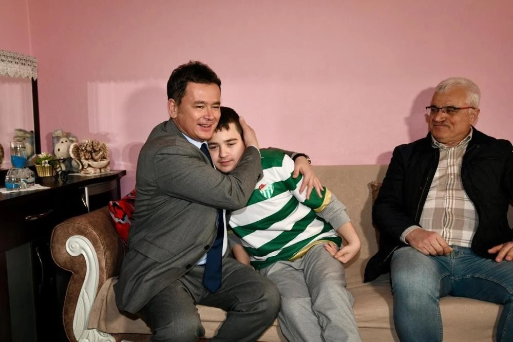 <div>İstiklal Mahallesi’nde yaşayan otizmli Yunus Emre Erdem, vatandaş ile belediye arasında iletişim köprüsü olan Osmangazi Çağrı Merkezi’ni arayarak Osmangazi Belediye Başkanı Erkan Aydın’dan doğum günü için Bursaspor forması talep etti. Çağrı merkezine ulaşan bu anlamlı istek üzerine harekete geçen Başkan Erkan Aydın, İstiklal Mahalle Muhtarı Mümin Gözyılmaz ile birlikte Yunus Emre’yi evinde ziyaret ederek gönülleri ısıtan bir sürprize imza attı.</div> <div></div> <div>Sevgi ve samimiyetin hakim olduğu buluşmada Yunus Emre ile yakından ilgilenen Başkan Aydın, özel gereksinimli bireylerin her zaman desteklenmesi gerektiğini vurguladı. Doğum günü pastasının kesilmesiyle birlikte evde neşe dolu anlar yaşanırken, Başkan Erkan Aydın’ın içten yaklaşımı ziyarete ayrı bir anlam kattı.</div> <div>Bu tür buluşmaların toplumsal dayanışmayı ve gönül bağlarını güçlendirdiğini belirten Başkan Erkan Aydın, "Yunus Emre’nin bugün 15’inci doğum gününü kutladık. Kendisine bundan sonraki hayatında sağlıkla, huzurla; ailesiyle ve sevdikleriyle birlikte nice güzel yaşlar diliyoruz. Bu buluşma bizim için gerçekten çok anlamlıydı" ifadelerini kullandı.</div> <div></div> <div>Hazırlanan sürpriz ile oldukça mutlu olduğunu söyleyen Yunus Emre Erdem ise kendisini kırmadığı için Osmangazi Belediye Başkanı Erkan Aydın’a teşekkürlerini sundu.</div> <h3>https://www.turkhaber.com/haber/mudanya-yeni-yil-pazari-kapilarini-acti-4129272.html</h3>