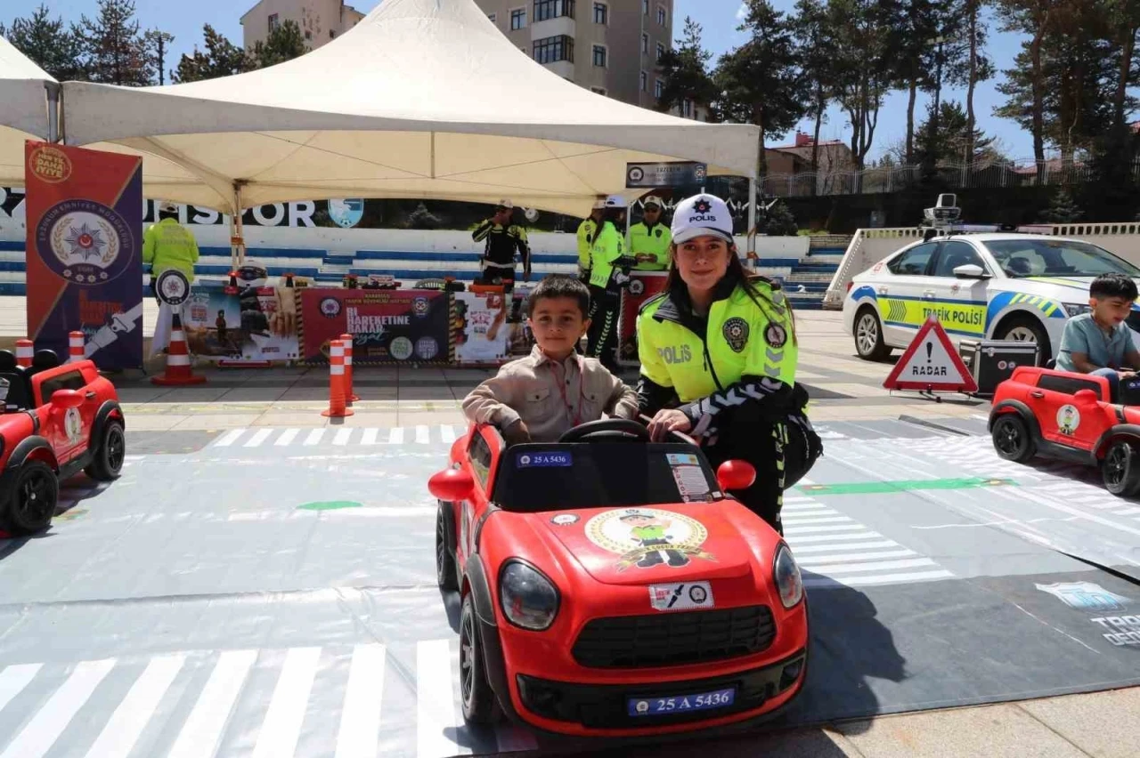 Erzurum’da polis ekipleri kurdukları stantlarla başta çocuklar olmak üzere vatandaşlara yönelik uygulamalı bilgilendirmeler yaptı. Havuzbaşı Kent Meydanı’nda kurulan stantlarda çocuklar mini araçlarla trafik deneyimi yaşarken büyükler 3 boyutlu gözlüklerle farklı heyecanlar yaşadı. Erzurum Emniyet Müdürlüğü tarafından konu ile ilgili yapılan paylaşımda, "3-9 Mayıs Karayolu Güvenliği ve Trafik Haftası Münasebetiyle Trafik Denetleme Şube Müdürlüğümüzce Havuzbaşı’nda stant kurularak vatandaşlarımıza genel trafik kuralları hakkında bilgi verilmiştir" denildi.