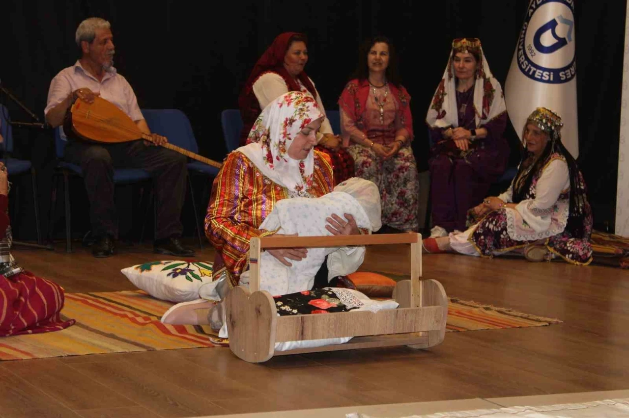 Aydın Yörük Efe Kültür Derneği tarafından üniversite öğrencilerine Yörük kültürü anlatıldı. Gelin alma, kına gecesi ve kadınları koruyan mor cepken geleneğinin anlatıldığı tiyatro oyunu ise izleyenlerden tam not aldı. Aydın’da Yörük kültürünün tanıtılması ve genç nesiller tarafından öğrenilmesi amacıyla çalışmalarına devam eden Aydın Yörük Efe Kültür Derneği, üniversiteli öğrenciler ile bir araya geldi. Üniversite kampüsünde kurulan çadırda öğrencilere Yörük kültürü tanıtıldı. Unutulmaya yüz tutmuş örf ve adetlerin anlatıldığı etkinlikte ayrıca dernek üyeleri tarafından mini bir tiyatro oyunu sergilendi. Oyunda Yörük kültüründe gelin alma, kına gecesi ve kadınları korumayı amaçlayan "mor cepken" gelenekleri canlandırıldı. Evlendikten sonra koca evinde kötü muamele gören gelinlerin, çeyiz sandığında bulunan mor cepkeni giyerek köy meydanında dolaşmasını ve şiddet gördüğünü sessiz bir şekilde anlatmasını sağlayan "mor cepken" geleneğinin canlandırıldığı oyun izleyenlerden tam not alırken, uzun süre ayakta alkışlandı. "Mor cepken kadınları koruyan bir gelenektir" Özellikle günümüzde kadınları korumak ve kollamak için uygulanan çalışmaların Yörüklerin mor cepken geleneğinden geldiğini ve mor cepkeninin kadını koruyan bir örf olduğunu ifade eden Aydın Yörük Efe Kültür Derneği Başkanı Mevlüt Kenar, "Üniversite öğrencilerimizin bahar etkinlikleri kapsamında biz de dernek olarak bir katkı sunmak istedik. Onunla ilgili temsili eski geleneklerimizi yansıtan gelin alma ve onun devamında Yörük geleneklerinde, Türk adetlerinde çok önemli olan mor cepken adetini canlandıracağız. Yörüklerin mor cepken adeti değişik şeylerde mor çatı, mor kadınlar gibi isimlerle kadınları koruma amaçlı yapılmıştır. Ama oyunda sergilediğimiz gibi esas kadın koruması en güzel bizim Yörük geleneklerinde anlatılmıştır. Mor cepken, Yörüklerde gelin evlenirken, sandığına koyuluyor. Gelin, baba evinden ayrılıp, eşi ile birleştikten ayrı bir obaya yerleştikten sonra eğer orada kötü muamele görürse, kötü davranılırsa, yaşayamayacak duruma gelirse o zaman mor cepkenini giyer ve obanın yüksek bir yerine oturuyor. Bunun anlamı ise ‘ben artık burada yaşayamıyorum. Beni kurtarın’ demek. O zaman da akrabalar gelini sahipleniyor, eşini dışlıyor ve gelini kurtarıyorlar. Mor cepkenin anlamı ve amacı bu" dedi. Geçmişten gelen iyi olan her şeyi gençlere aktarmayı istediklerini sözlerine ekleyen Başkan Kenar, "Gençlerin kötü örnek olmaması, iyi yetişmesi, folklorumuzu öğrensin, geleneklerimizi bilsin, yaşantımızı öğrensin, iyi olan şeyleri öğrensin. Biz iyi olan ne varsa geçmişten bugüne gelen, gençlerimize bunu öğretip, iyi bir nesil yetişmesine katkı sunmak istiyoruz" şeklinde konuştu. Ayrıca etkinlikler kapsamında Yörük çadırında öğrencilere Yörüklerin kullandığı eşyalar tanıtıldı. Halk oyunları gösterilerinin ardından öğrencilere keşkek ikram edildi.