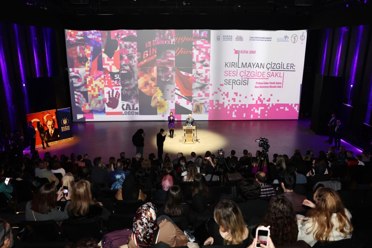 Bursa'da lise öğrencilerinin eşitlik ve şiddetsiz yaşam mesajını taşıyan “Kırılmayan Çizgiler” dijital sergisi, 25 Kasım Kadına Yönelik Şiddete Karşı Uluslararası Mücadele Günü kapsamında Bursalılarla buluştu.Eşitliği ve şiddetten, ayrımcılıktan uzak bir gelecek idealini çalışmalarının merkezinde tutan Büyükşehir Belediyesi, toplumsal duyarlılığı ve sosyal belediyecilik vizyonunu yansıtan önemli bir etkinliğe daha imza attı. Zeki Müren Güzel Sanatlar Lisesi ile Feriha Uyar Mesleki ve Teknik Anadolu Lisesi öğrencilerinin sanatsal üretimlerinden oluşan “Kırılmayan Çizgiler: Sesi Çizgide Saklı” isimli dijital sergi, ‘25 Kasım Kadına Yönelik Şiddete Karşı Uluslararası Mücadele Günü’ kapsamında Bursalıların ziyaretine açıldı. 110 eserin yer aldığı dijital sergi, Büyükşehir Belediyesi tarafından ‘Fark Et, Oyna, Dönüştür’ teması ile gençler için düzenlenen atölye çalışmalarını dijital dünya ile buluşturdu. DasDas Bursa’da düzenlenen serginin açılış programına, Bursa Büyükşehir Belediye Başkanı Mustafa Bozbey ve eşi Seden Bozbey’in yanı sıra Aile ve Sosyal Politikalar İl Müdürlüğü ve Nilüfer İlçe Milli Eğitim Müdürlüğü yöneticileri, sivil toplum kuruluşlarının temsilcileri, öğretmenler ve öğrenciler katıldı. KÜRESEL MÜCADELENİN KENTTEKİ YANSIMASI Açılış programında konuşan Büyükşehir Belediye Başkanı Mustafa Bozbey, gençlerin aklından ve hayal gücünden yükselen güçlü farkındalık çağrısını hep birlikte görünür kılmak istediklerini söyledi. Hayata geçirilen dijital serginin dijital alanlarda yaşanan şiddeti, eşitsizlikleri ve görünmeyen yaraları sanatın diliyle ortaya koyduğunu vurgulayan Başkan Mustafa Bozbey, “Sergide yer alan her çizgi, her renk ve her ışık; ‘şiddetsiz bir yaşam mümkündür’ diyen güçlü bir dayanışmanın ifadesidir. Kadına Yönelik Şiddete Karşı Uluslararası Mücadele Günü’nde hayata geçirdiğimiz proje, bu alanda verilen küresel mücadelenin Bursa’daki yansımasıdır. Aynı zamanda Birleşmiş Milletler Kadın Birimi’nin bu yıl belirlediği ‘Tüm kadınlara ve kız çocuklarına yönelik dijital şiddete son verin–Birleşelim’ temasının da önemli bir parçasıdır. Sergi, küresel bir çağrının gençlerimizin üretimiyle yerelde karşılık bulması açısından çok değerlidir” dedi. “GENÇLER, BUGÜNÜN DEĞİŞTİRİCİ GÜCÜDÜR” Büyükşehir Belediyesi tarafından düzenlenen ve gençlerin katılımıyla yürütülen ‘Fark Et, Oyna, Dönüştür’ atölyesinin, çalışmanın merkezinde yer aldığını belirten Başkan Mustafa Bozbey, “Toplumsal cinsiyet eşitliğinden dijital şiddete, çevrimiçi güvenlikten başvuru mekanizmalarına kadar uzanan kapsamlı bir eğitim süreci yürütüldü. Bu sürece 100’ün üzerinde öğrencimiz katıldı. Bu eserler; gençlerimizin düşünme, üretme ve dönüştürme gücünün ne kadar yüksek olduğunu gösteriyor. Gençler sadece yarınlarımızın umudu değil, bugünün de değiştirici gücüdür. Sanat, yalnızca estetiğin dili değildir. Adaletin, eşitliğin ve barışın da dilidir. Büyükşehir Belediyesi olarak toplumsal cinsiyet eşitliğine, gençlerin kent yaşamına katılımına ve sanatın dönüştürücü gücüne önem veriyoruz. Eşitliği, katılımı ve sanatı aynı çizgide buluşturan her adımı destekliyoruz” diye konuştu. Bursalı gençlerinin üretimleriyle gurur duyduklarını belirten Başkan Mustafa Bozbey, “Sergi, şiddetsiz bir dünya için verdiğimiz mücadeleye güç katacaktır. Gençlerimizin sanatla kurduğu bağı güçlendirecektir. Bursamızın eşitlikçi, duyarlı ve dönüştürücü kimliğini daha da ileriye taşıyacaktır. Serginin hayırlı olmasını diliyorum” dedi. Sergiye eserleriyle değer katan öğrenciler, desteklerinden dolayı Başkan Mustafa Bozbey’e ve Büyükşehir Belediyesi’ne teşekkür etti. Konuşmaların ardından sergiyi gezen Başkan Bozbey ve eşi Seden Bozbey, izlenime sunulan çalışmaları yakından inceledi. Sergi, 25, 26 ve 27 Kasım tarihlerinde ziyaret edilebilecek. Kaynak: (KAHA) Kapsül Haber Ajansı
