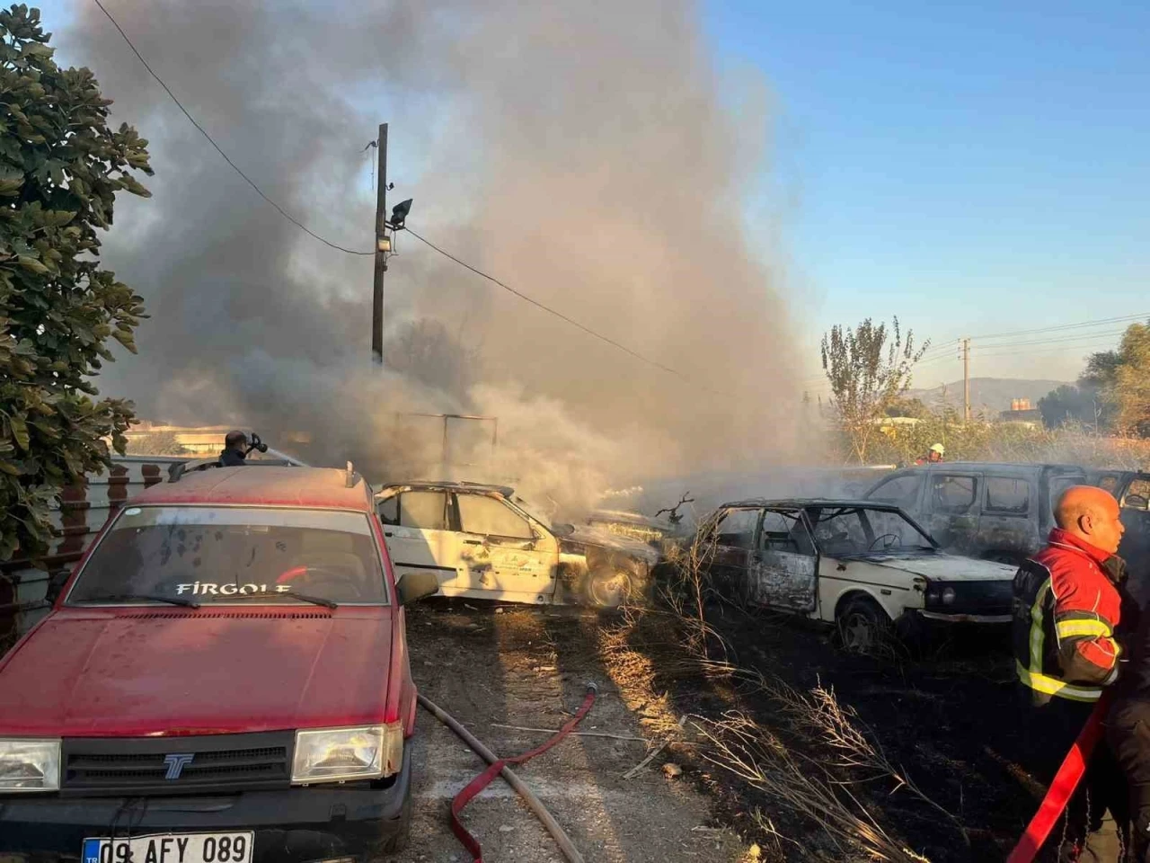 <div>Yangın, akşam saatlerinde henüz bilinmeyen bir nedenle Ata Mahallesinde bulunan Güzelhisar Yediemin otoparkında çıktı. Alevler rüzgarın etkisi ile büyüdü. İhbar üzerine olay yerini itfaiye ve polis ekipleri sevk edildi. Alevler otoparkın yanındaki boş araziye de sıçradı. İtfaiye ekipleri alevlere müdahale etti. Yangında kullanılmayan hurda 5 otomobil ve 30 motosiklet zarar gördü.</div> <div>Polis olayla ilgili inceleme başlattı.</div>
