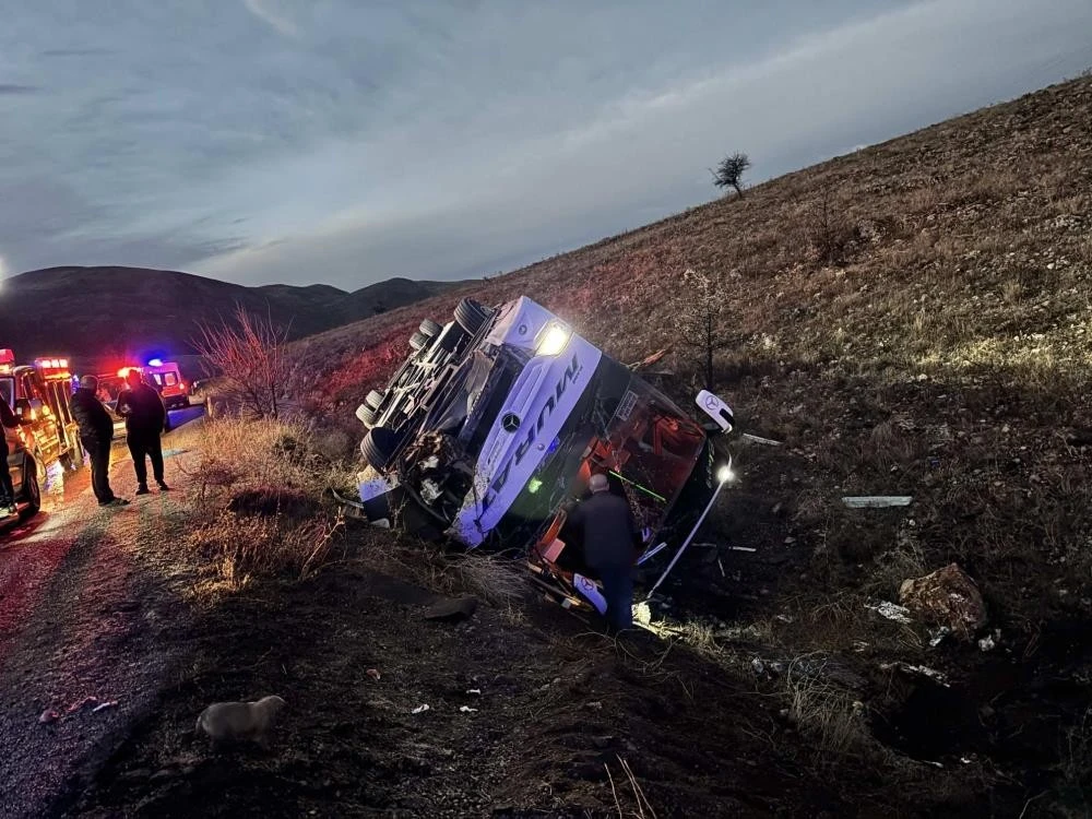 <div>Dinar ilçesine bağlı Tatarlı beldesi yakınlarında, A.A. idaresindeki 23 AB 204 plakalı Murat Turizm'e ait yolcu otobüsü bilinmeyen bir nedenden ötürü kontrolden çıkarak şarampole devrildi.</div> <div>Kazada 21 kişi yaralanırken, yaşamını yitirenleri ise Fatma Korkmaz (41) ile Namık Mithat Kanyücel (61) olduğu tespit edildi.</div> <div>Kazayla ilgili soruşturma devam ederken, yaralıların büyük bir kısmının ise tedavileri sonrası taburcu edildiği bildirildi.</div> <h3>https://www.turkhaber.com/haber/otobus-kazasinda-olenlerin-kimlik-tespit-calismalari-suruyor-4127520.html</h3> <div></div>