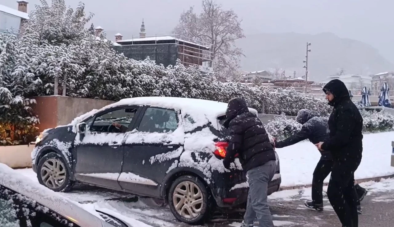 BURSA, yeni yılın ilk sabahında kar yağışıyla beyaza büründü, trafikte aksamalar yaşandı.Kentte dün sabah saatlerinde etkili olan karla karışık yağmur, ilerleyen saatlerde yoğun kar yağışına döndü. Akşam saatlerinde ise kar, yerini yer yer yağmura bıraktı. Kar yağışı bu sabah yeniden etkisini gösterdi, kent merkezi ile yüksek kesimler beyaza büründü. Kar yağışına hazırlıksız yakalanan sürücüler zor anlar yaşadı. Yolda kalan araçlar nedeniyle trafikte aksamalar yaşandı. (DHA)