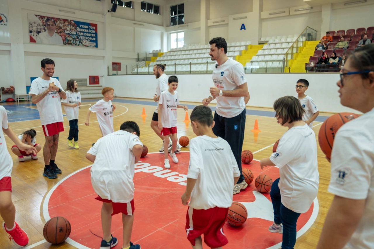 Antalya’da gerçekleştirilen One Team projesinde parkeye çıkan 15 özel sporcu, basketbol aracılığıyla hem kendilerini ifade etme hem de sosyal hayata daha güçlü bir şekilde katılma fırsatı buldu. Fiziksel aktiviteyle birlikte bu antrenmanlarda, sporun birleştirici gücüyle özgüven ve dayanışma ön plana çıktı. Muratpaşa Belediyesi Gazi Mustafa Kemal Atatürk Spor Salonu’nda düzenlenen antrenmanlar, sporcuların hem fiziksel hem kişisel gelişimini destekleyecek şekilde hazırlandı. Muratpaşa Belediyesi’nin basketbol antrenörü İrgecan Işık, One Team Koçu olarak antrenmanlarda yer aldı. Anadolu Efes One Team Elçisi Erkan Yılmaz çalışmalara dahil olarak çocuklara ilham oldu.