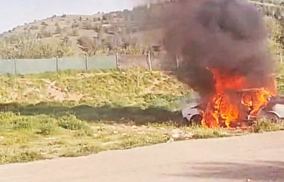 Ankara’nın Çankaya ilçesinde boş arazide bir araç yanarak kullanılmaz hale geldi.
