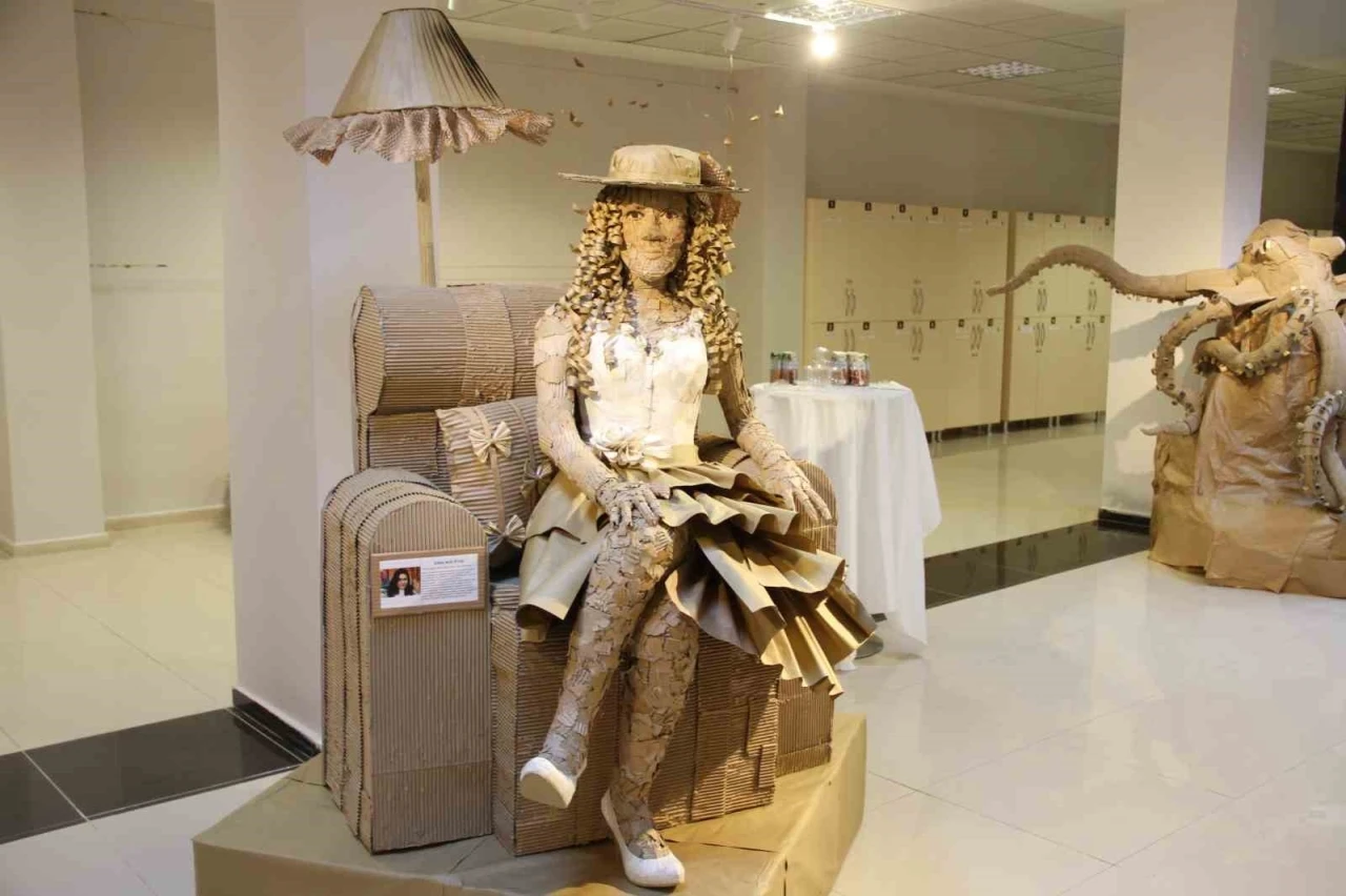 Çankırı’da üniversite öğrencilerinin atık karton ve ambalaj malzemelerinden hazırladığı heykellerin yer aldığı "Karton Heykel Sergisi" ziyaretçilerin beğenisini kazandı.