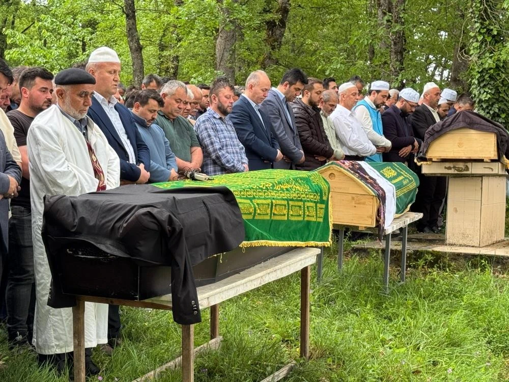 Mahalle camiindeki öğle namazının müteakiben kılınan cenaze namazının ardından karı, koca ve oğlu köy mezarlığındaki aile kabristanına defnedildi.