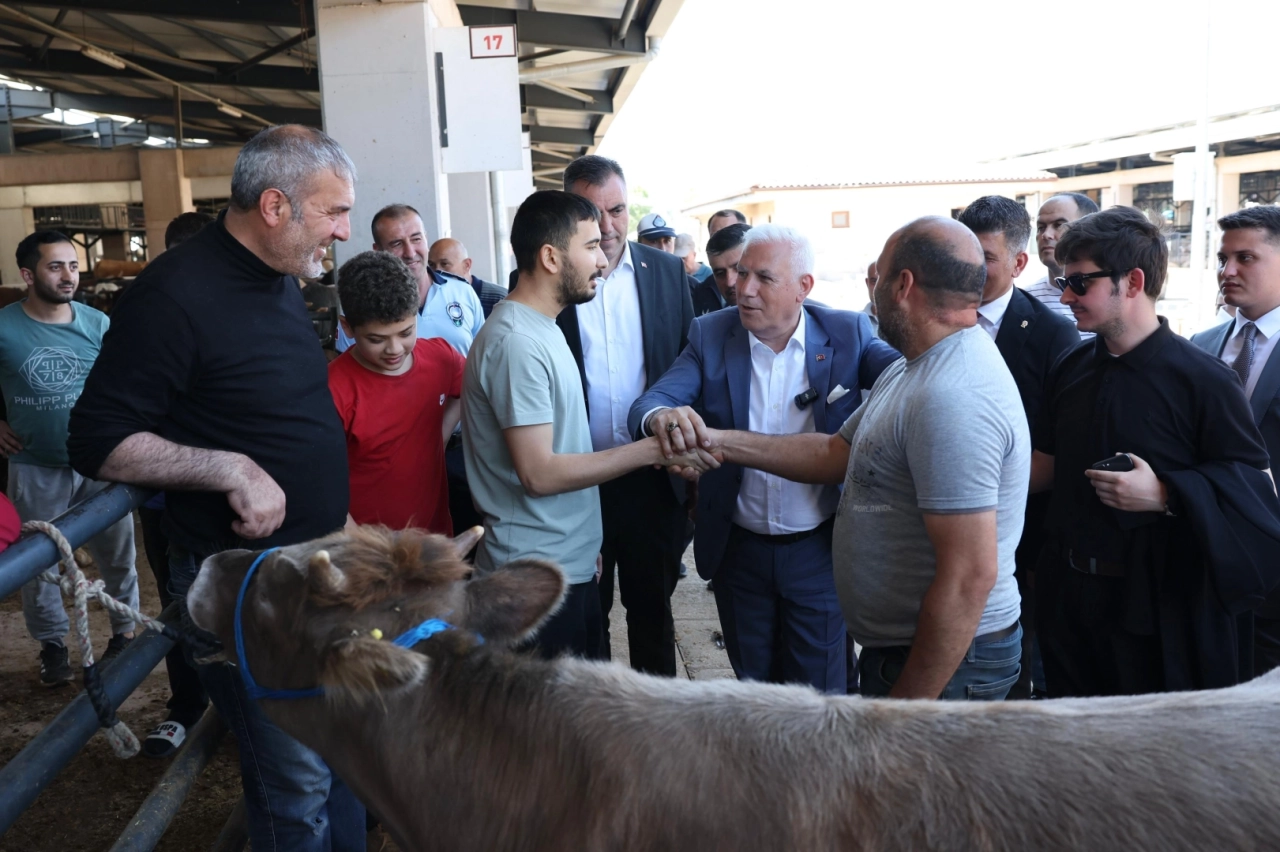 Bursa Büyükşehir Belediye Başkanı Mustafa Bozbey, Osmangazi Belediyesi Kurban Pazarı’nı ziyaret etti. Kurbanlık satan esnafla sohbet eden Başkan Bozbey, vatandaşların kurban kesimi ve atıkların bertarafı konusunda hassasiyetle davranmasını istedi.