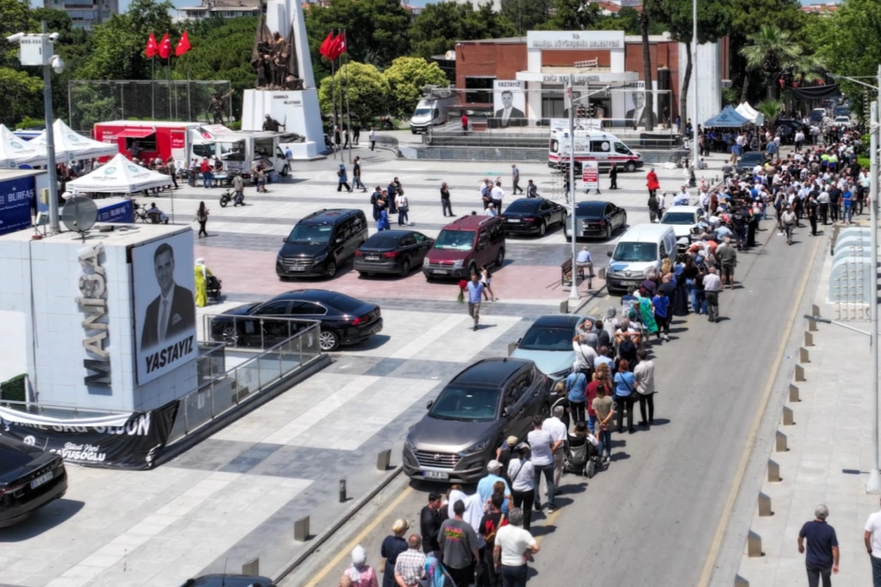 Sadece Manisa’dan değil, çevre illerden ve Türkiye’nin dört bir yanından gelen vatandaşlar, sıcak havaya rağmen saatlerce kuyrukta bekleyerek Fatih Sergi Salonu’nda Başkan Ferdi Zeyrek için taziyelerini iletti.