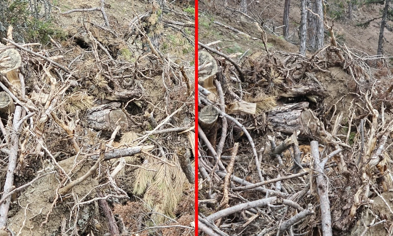 Bolu’nun Göynük ilçesinde, nesli tehdit altındaki vaşak ve yavruları kamufle oldukları ağaçların arasında görüntülendi.