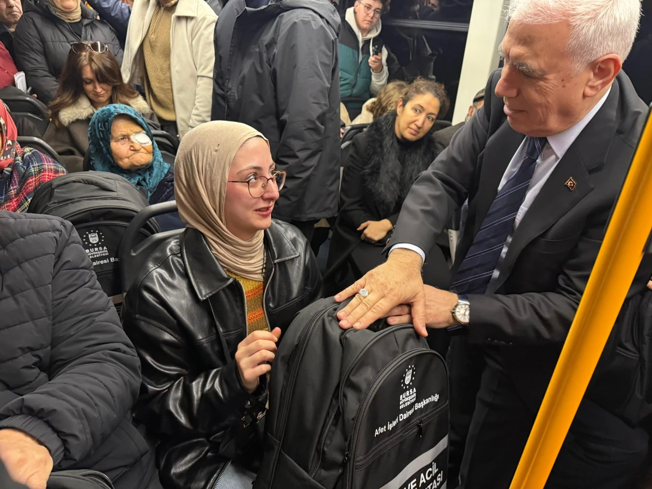 Bursa Büyükşehir Belediye Başkanı Mustafa Bozbey, daha sonra Beşeveler BursaRay İstasyonu’ndan metroya binerek vatandaşlarla birlikte Şehreküstü İstasyonu’na kadar yolculuk yaptı. Başkan Mustafa Bozbey tarafından vatandaşlara AKOM tarafından hazırlanan ve içinde ilk yardım kiti, battaniye, radyo, el feneri, diş fırçası, yağmurluk, düdük ve çöp torbası bulunan afet ve acil durum çantaları dağıtıldı. Yolculuk boyunca Bursalılarla afet konusunda sohbet eden Başkan Mustafa Bozbey, afetlere hazırlıklı olmanın önemine vurgu yaptı.