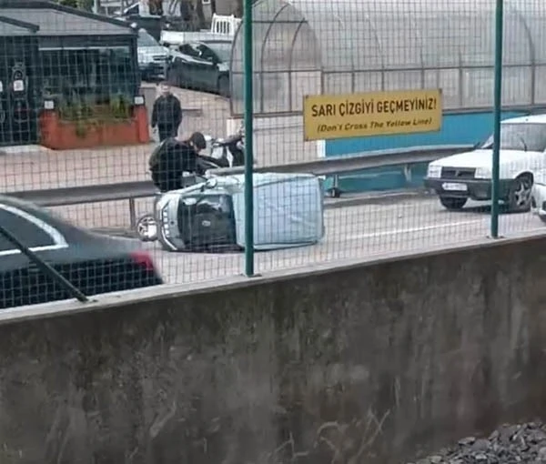 Şiddetli rüzgarın etkisiyle seyir halindeki mini otomobil devrilerek yan yattı. Mini otomobilde bulunan sürücü, çevredeki vatandaşların hızlı müdahalesiyle bulunduğu yerden çıkarılarak kurtarıldı. O anlar cep telefonu kamerasıyla kaydedildi.