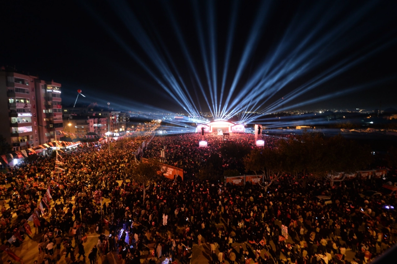 Cumhuriyet’in bir duruş, inanç ve onur olduğunu dile getiren Başkan Şadi Özdemir, Cumhuriyet’in kadının sesi, gencin umudu, çocuğun gülüşü ve halkın iradesi olduğunu ifade etti. Cumhuriyet’i bir nilüfer çiçeğine benzeten Başkan Şadi Özdemir, “Nilüfer çiçeği kökleri bataklığın içinde de olsa, her sabah tertemiz yapraklarıyla yeniden doğar. Yüzünü güneşe çevirir. Cumhuriyet de öyledir! Cumhuriyet, bu toprakların nilüfer çiçeğidir. Karanlıktan doğar, umuda uçar, ışığa yürür. Ve biz, bu ışıkla aydınlanıyoruz. Bu akşam Bursa’nın dört bir yanından gelen yüz binlerce yürek bir aradayız. Bütün renklerimizle kol kola omuz omuza bir arada olmak ne güzel. Harikasın Nilüfer! Harikasın Bursa. Bu meydanda bir milletin bayram coşkusu var. Yüreğimizde yüz yıllık bir sevda var. Atatürk’ün, ‘Efendiler, yarın Cumhuriyeti ilan edeceğiz!’ dediği o anın sesi var” dedi.