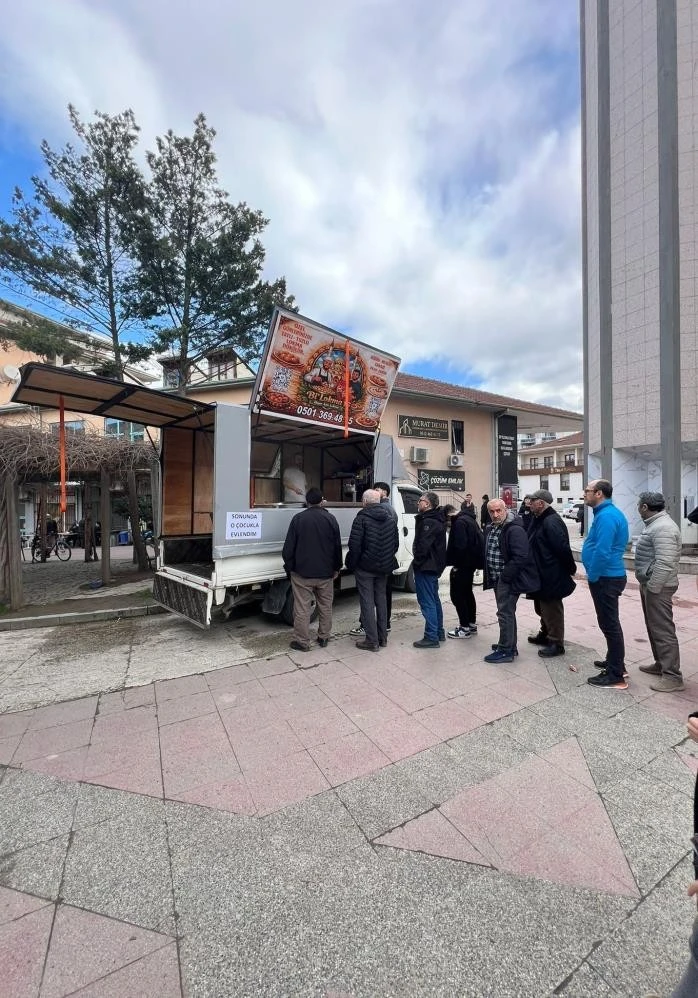 İnegöl Sani Konukoğlu Camii önünde kurulan lokma aracında vatandaşlara ikramda bulunulurken, lokma aracına asılan "Sonunda o çocukla evlendim" yazısı dikkat çekti. Lokma dağıtımı çevredeki vatandaşlar tarafından ilgiyle karşılandı.