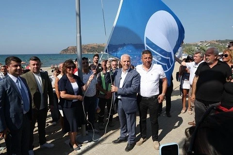 Konuşmaların ardından TÜRÇEV Genel Müdürü Almıla Kından Cebbari tarafından Başkan Mustafa Bozbey’e Mavi Bayrak sertifikası takdim edildi. Ardından denizden botla getirilen mavi bayrak alkışlar eşliğinde göndere çekildi.