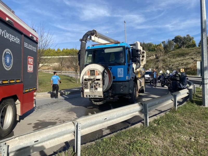 O sırada yoldan geçen BUSKİ'ye ait bir vidanjör durup sürücüye yardım etti. İtfaiye ekipleri gelene kadar yanan araca su sıkan belediye ekipleri yangının çevreye sirayet etmesinin de önüne geçti.