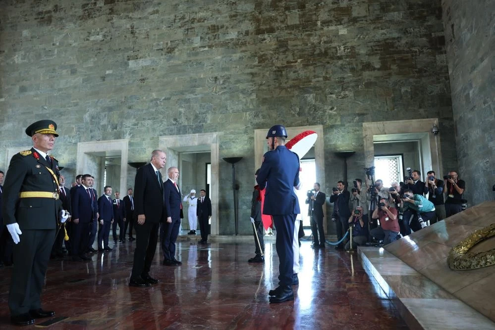 Büyük Zafer'in 103'üncü yılı kutlamaları kapsamında, ilk tören Anıtkabir'de düzenlendi. Tören, devlet erkanının Aslanlı Yol'da yürüyüşüyle başladı.