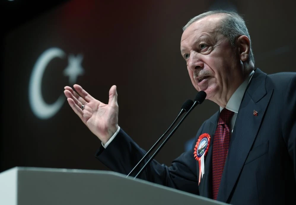 Türkiye'nin savunma sanayiinde geldiği noktadan da söz eden Cumhurbaşkanı Erdoğan, "İHA'larımızla, SİHA'larımızla, son teknoloji ürünü kara, hava, deniz ve haberleşme araçlarımızla bugünün savaş konseptini de yine biz belirliyoruz. Diğer taraftan, iç cephemizi de tahkim ediyor, birliğimizi, dirliğimizi, kavlimizi güçlendirmek için tarihi nitelikte adımlar atıyoruz. Bu adımlarla ‘Terörsüz Türkiye’ ve ‘terörsüz bölge’ hedeflerimize doğru kararlı, ümitli ve dikkatli bir şekilde ilerliyoruz. Bu menzile vardığımızda, inşallah çok daha güçlü, çok daha müessir, çok daha muteber bir Türkiye'yi hep birlikte hayata geçirmiş olacağız. Mevlana Celaleddin-i Rumi, bakınız ne diyor; ‘Söz, tir-endaz'ın, yani okçunun çektiği oka benzer.’ Tüm dünya bilsin ki bizim birlik ve kardeşliğimiz de gerilmiş bir yay gibidir. Bu yaydan çıkan her ok, milletimizin bekasına kasteden düşman her kimse ona yönelmiştir. Okun er ya da geç, hedefi tam isabetle vuracağına, kirli kuşatmaları yarıp geçeceğine, Allah'ın izniyle emperyalist planları yırtıp atacağına biz tüm kalbimizle inanıyoruz, bundan hiçbir şüphe duymuyoruz. Buradan milletimizle birlikte, yüzünü Türkiye'ye çevirmiş tüm dost, kardeş ve soydaşlarımıza sesleniyorum. Gazze ve Suriye başta olmak üzere, bölgemizdeki kardeşlerimizin yaşadığı ağır imtihanlar kimseyi endişeye sevk etmesin. Coğrafyamızı kana, katliama, vahşete ve gözyaşına boğmak isteyenlerin pervasızlıkları kimseyi karamsarlığa sürüklemesin. Bin yıldır yaşadığımız bu topraklarda biz nice imtihanlarla karşılaştık. Nice badireler atlattık. Nice musibetlere göğüs gerdik. İçeriden ve dışarıdan nice ihanete muhatap olduk. Ama hepsinin de üstesinden gelmeyi hamdolsun, başardık. Zümrüdü Anka gibi her seferinde küllerinden yeniden doğduk. Zalimler karşısında diz çökmedik. Müstevliler karşısında boyun eğmedik. Zorbalar karşısında teslim olmadık. Can verdik, canımızdan aziz bildiklerimizi kara toprağa verdik. Fakat istiklal ve istikbal sevdamızdan asla taviz vermedik. Bize ömür biçenler oldu. Bize kefen biçenler oldu. ‘Hasta adam’ dediler, ‘bu sefer tamam’ dediler, ‘Türkler yok olacak, esir olacak’ dediler, her defasında Türk’ün sarsılmaz imanına ve çelikten iradesine çarptılar. Her defasında Türk milletinin mücadele azmi, sabrı, cesareti karşısında kaybettiler. Bize ömür biçenlerin çoğu tarih oldu. Çoğu unutulup gitti. Şimdi onları kimse hatırlamıyor. Ama Türk milleti olarak biz, hamdolsun dimdik ayaktayız, tarih yazmaya devam ediyoruz" diye konuştu.