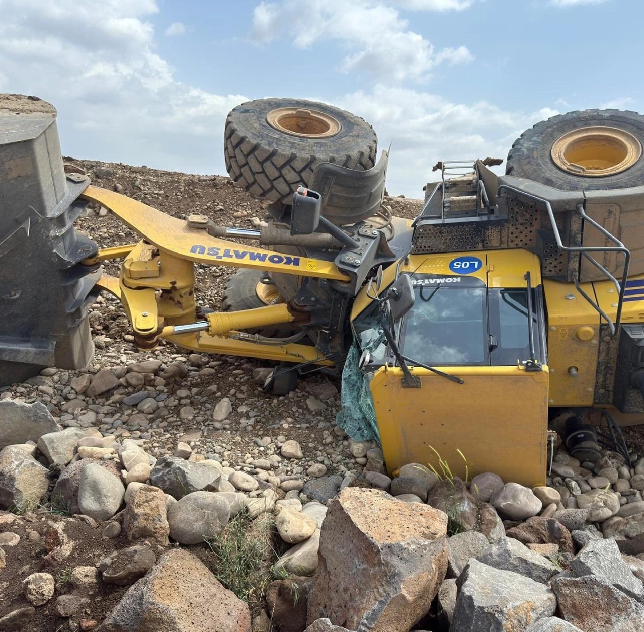 Hatay’da devrilen iş makinasının sürücüsü yaralandı.
