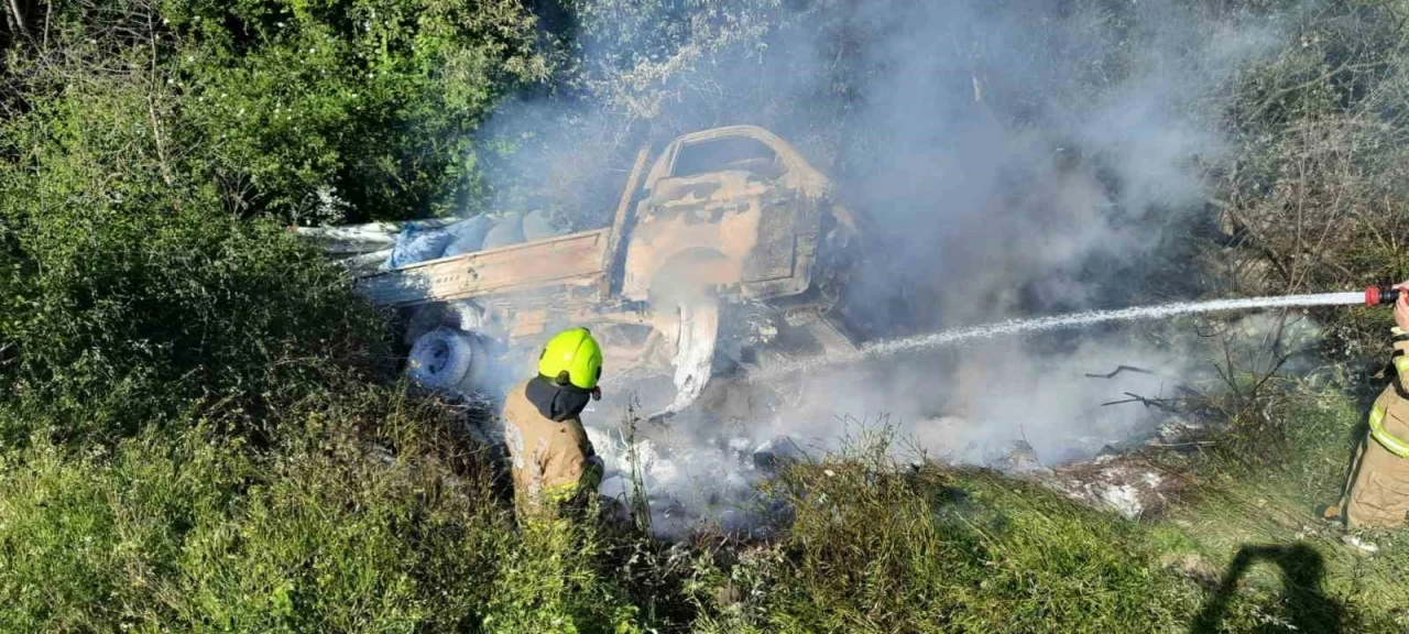 Edinilen bilgiye göre, Denizkent-Biga yolu üzerindeki Tahirova mevkisinde M.E. idaresindeki 10 TD 659 plakalı ticari araç, seyir halindeyken henüz bilinmeyen bir nedenle alev aldı. İhbar üzerine olay yerine Gönen İtfaiye Grup Amirliği ekipleri sevk edildi.