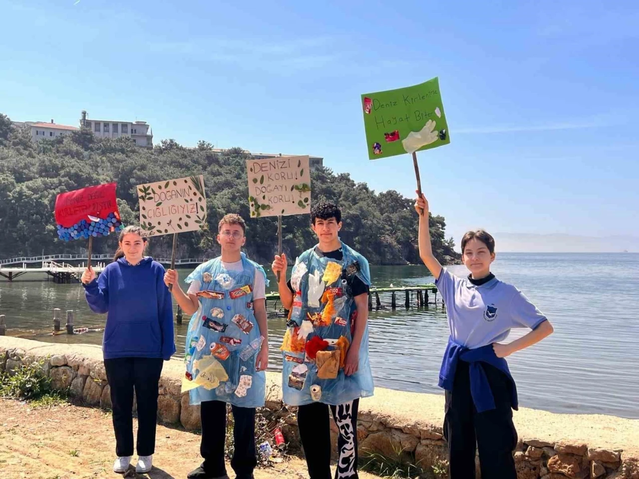 Heybeliada Anadolu Lisesi öğrencileri, çevre kirliliğine dikkat çekmek için yürüyüş düzenledi; pankartlar taşıdı, sahilde temizlik yaptı.